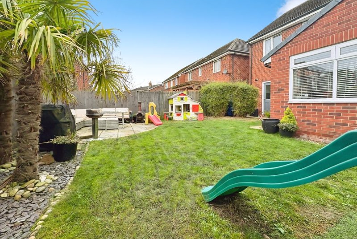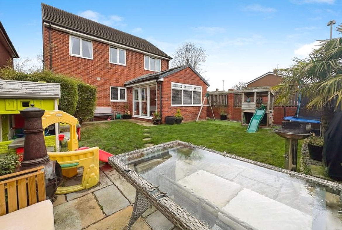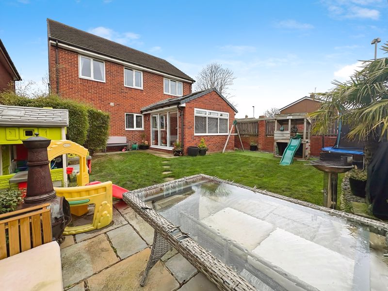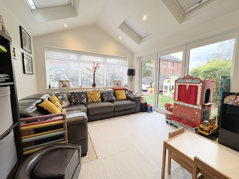 This beautifully presented four-bedroom detached home offers stylish, modern living in a highly desirable Seaton Delaval location. Finished to an exceptional standard throughout, the property showcases a stunning blend of contemporary design, practical layout and high-quality upgrades. The welcoming entrance hall leads to a spacious formal lounge featuring a bespoke media wall complete with a stylish infinity fire, illuminated display niches and integrated storage — a real focal point of the home. The property flows through to a generous open-plan kitchen and dining area, fitted with modern units, integrated appliances and excellent surface space, making it ideal for family life and entertaining. A standout feature is the superb garden room extension, boasting a vaulted ceiling with Velux windows and full-width glazing that opens onto the rear garden. This bright and versatile space is perfect as a family room, playroom or additional lounge. The ground floor also benefits from a well-designed utility room, integral garage and a convenient downstairs WC accessed from the hallway. Upstairs, there are four well-proportioned bedrooms, including a stylish principal bedroom with fitted wardrobes and a modern en-suite shower room. The upgraded family bathroom offers a waterfall shower over bath, contemporary tiling and a sleek vanity unit. Externally, the private rear garden has been attractively landscaped with a lawn, patio seating area and mature planting, providing a sunny and enjoyable outdoor space. The front of the home offers excellent kerb appeal with a double driveway and neat frontage. Freehold, EPC: TBC, Council Tax Band: D, Gas, Electric, Water, Heating, Drainage: Mains Connected. Broadband: Fibre to Premises, Mobile Phone Blackspot: No