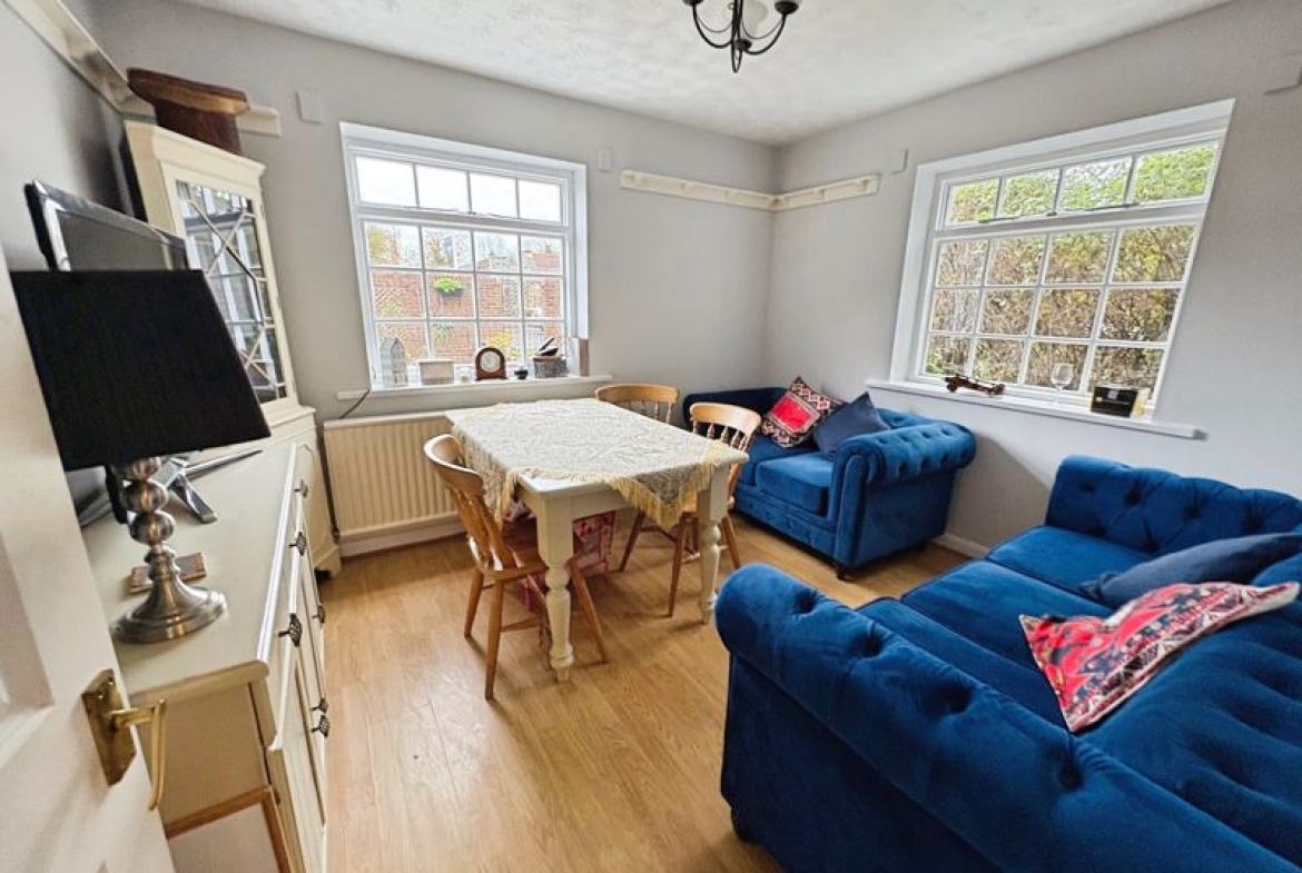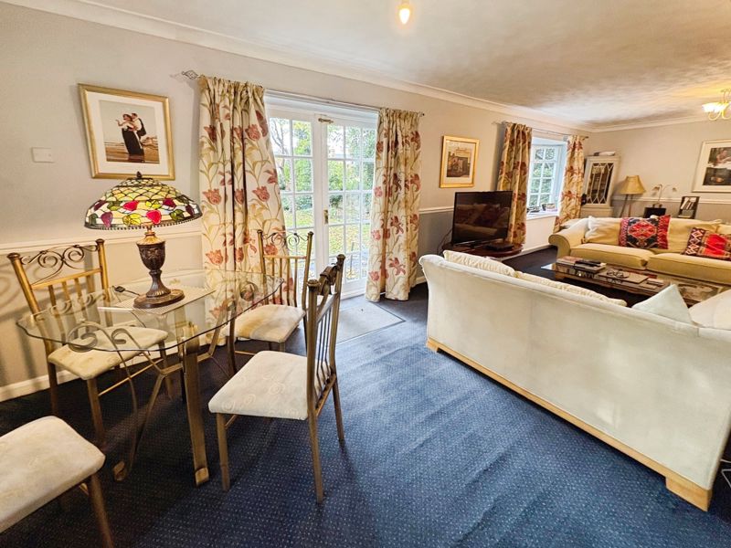 Built in feature fireplace with wood burning stove, dado rail, radiator x 2. Bow window to rear, window to side and French doors leading to rear garden.