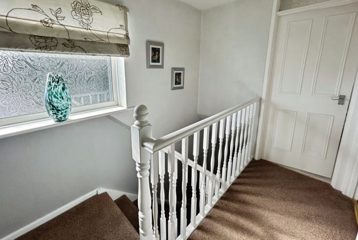 FIRST FLOOR LANDING AREA: UPVC double glazed frosted window to side, access to loft, storage cupboard housing combination boiler.