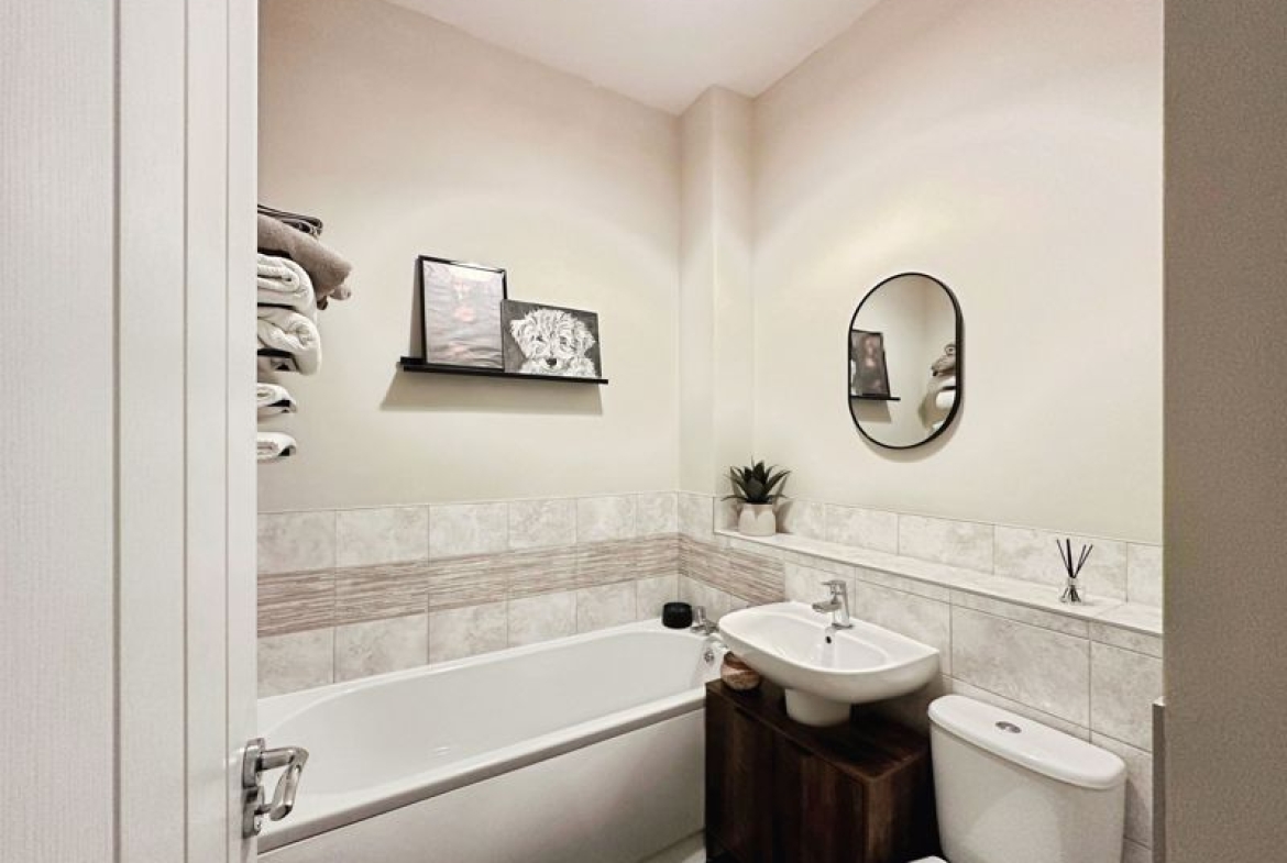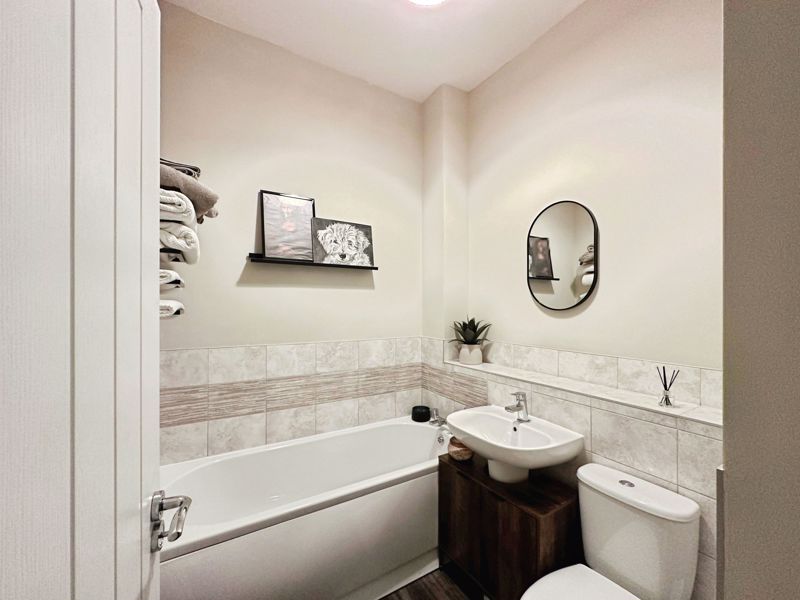 To the opposite end of the living space, you are presented with two generous sized double bedrooms, both of which have been finished to a high standard and benefit from fitted wardrobes. The master bedroom further benefits from its own ensuite shower room. The family bathroom has been finished with basin, W.C and bath tub.