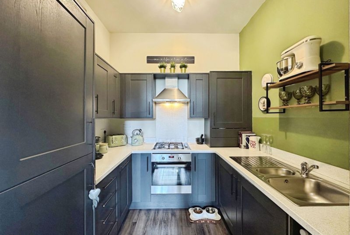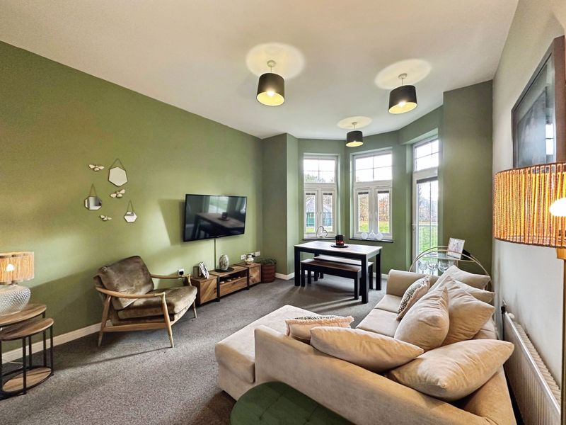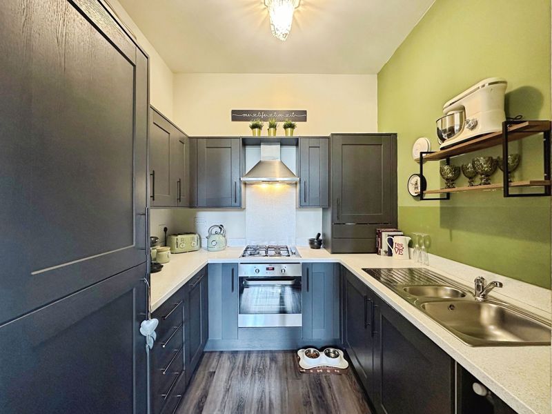 The property briefly comprises:- Entrance hallway, leading into a bright modern lounge, which has been fitted with light grey carpets and tastefully decorated. The airy lounge offers views over the greenery to the rear and benefits from a balcony, which can be accessed via the single patio door. The high spec kitchen has been fitted with a range of wall and base units offering excellent storage. Appliances include gas hob, electric oven, dishwasher, washer dryer and fridge/freezer.