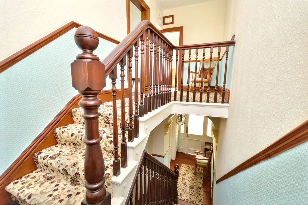Split landing with steps up to bathroom and steps up to main landing