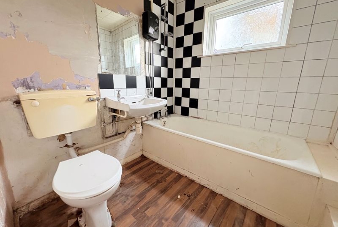 BATHROOM: 6’4 x 6’1 (1.94m x 1.86) comprising of, bath, electric shower, washbasin, w.c., radiator, double glazed window, part tiled