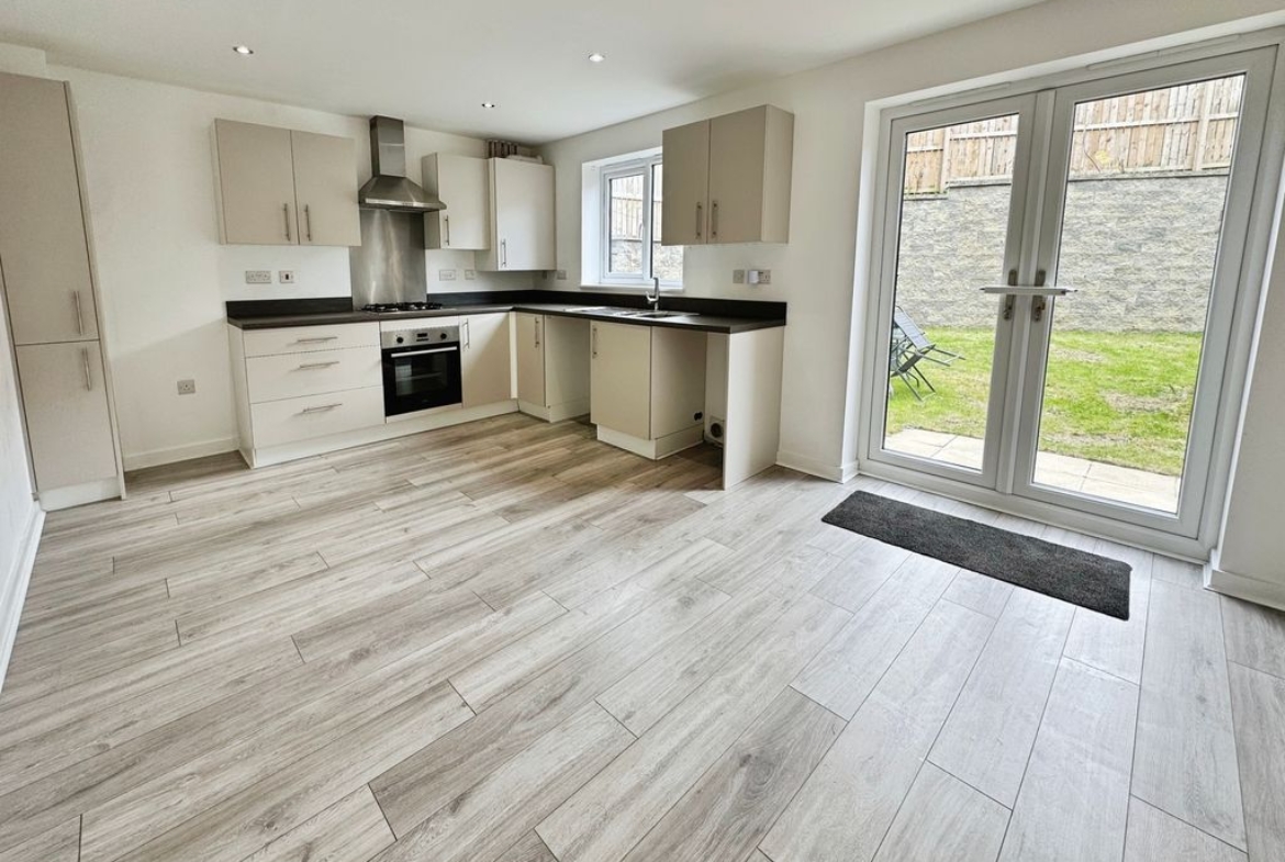 On the ground floor, a spacious reception room provides a comfortable living area, leading through to a kitchen with dining space, natural light and French doors opening directly onto the southerly garden – ideal for everyday indoor–outdoor living. There is also a useful downstairs WC. Upstairs, you’ll find two double bedrooms, including a main bedroom with en-suite, plus a single bedroom and a separate family bathroom. Outside, the property benefits from two allocated parking spaces.