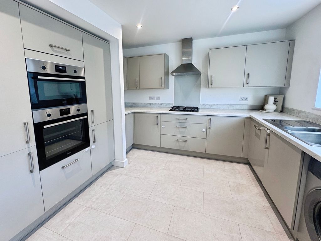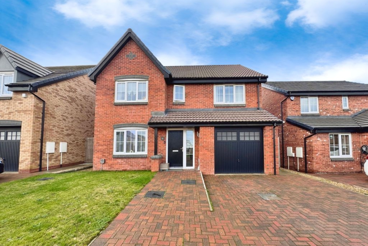 This detached house is for sale in a sought-after new build estate in Ryton, constructed by Ashberry Homes. Featuring four double bedrooms, the property offers spacious family accommodation. The main bedroom includes an en-suite, while another bedroom benefits from built-in wardrobes. There is a single bathroom equipped with a heated towel rail and a downstairs WC for added convenience.
