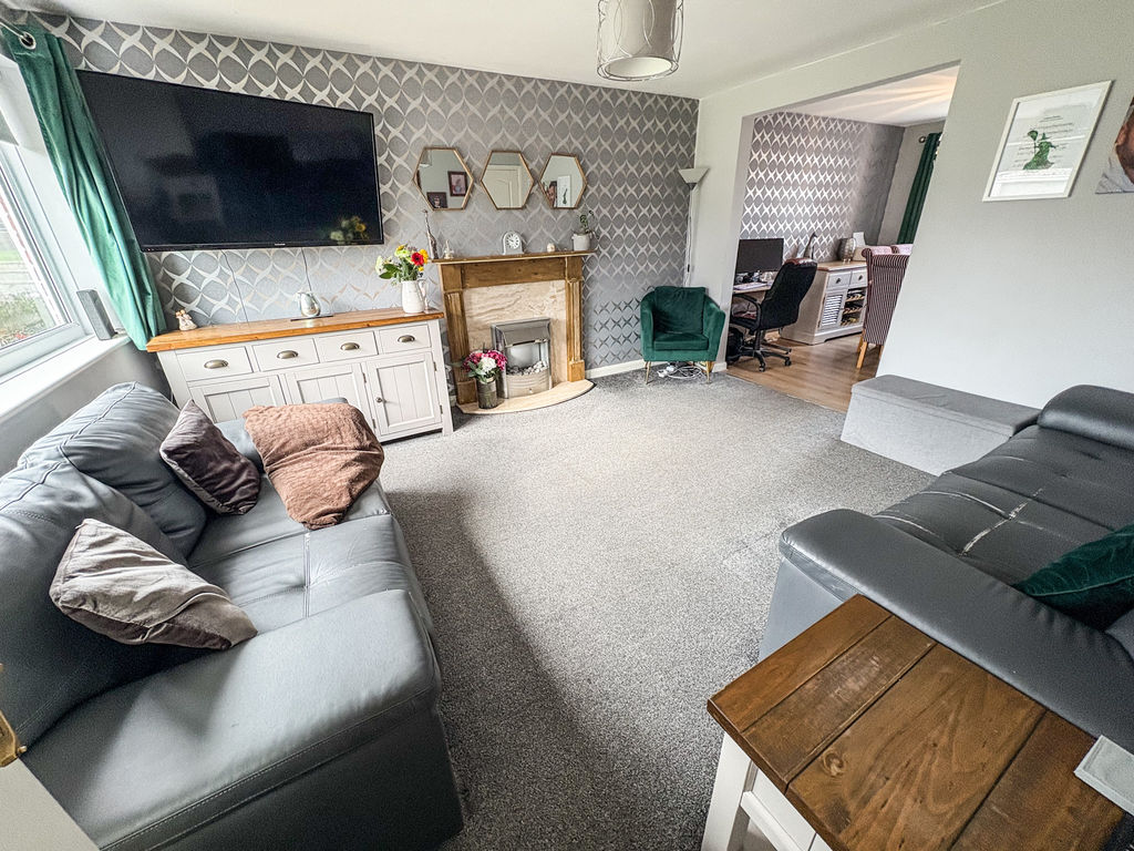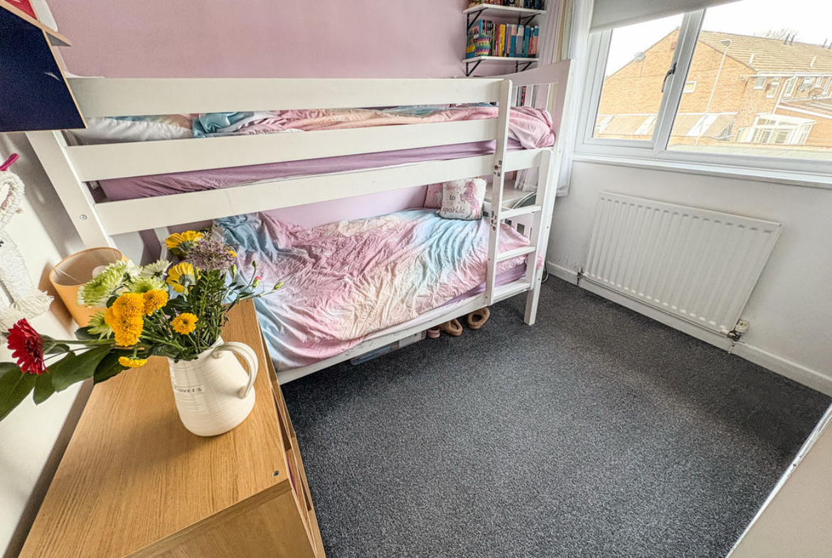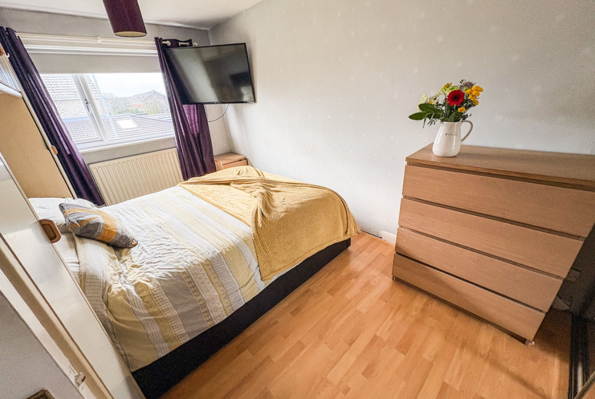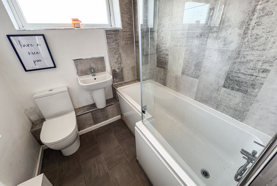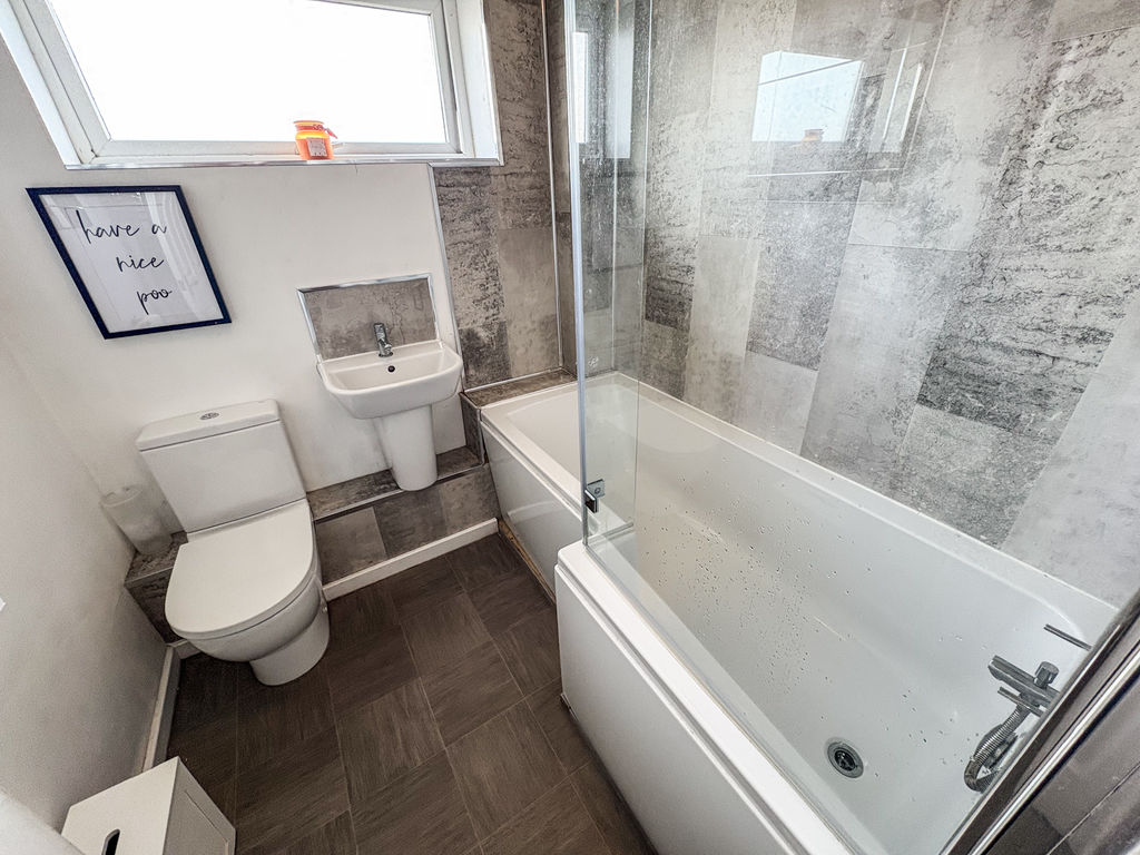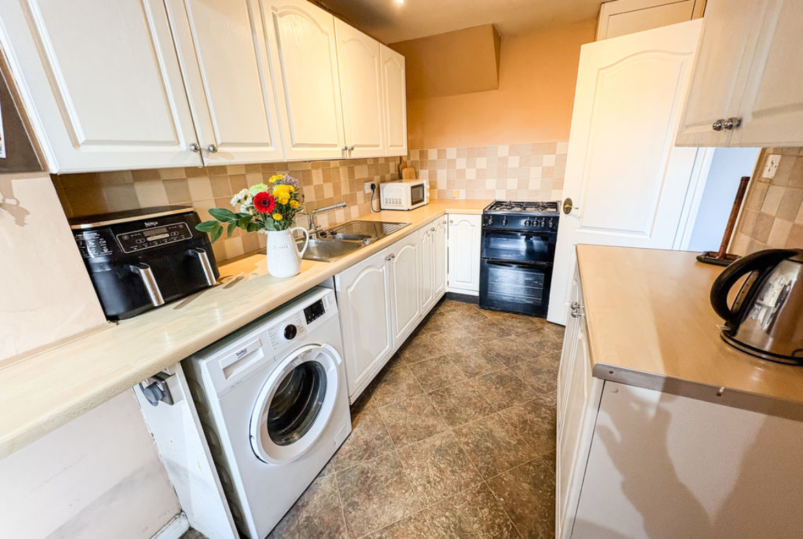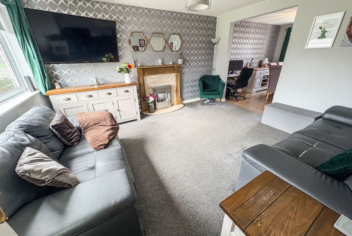 Upstairs, the home comprises three well-proportioned bedrooms, each offering fitted storage for added convenience. The accommodation is further enhanced by a newly fitted family bathroom, finished to a modern standard and featuring a shower.