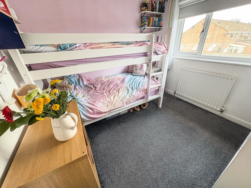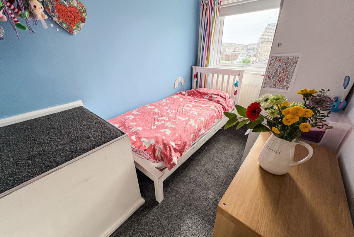 BEDROOM THREE: (front): 10’5 x 6’9 (3.18 x 2.06m) Radiator, double glazed window, storage cupboard