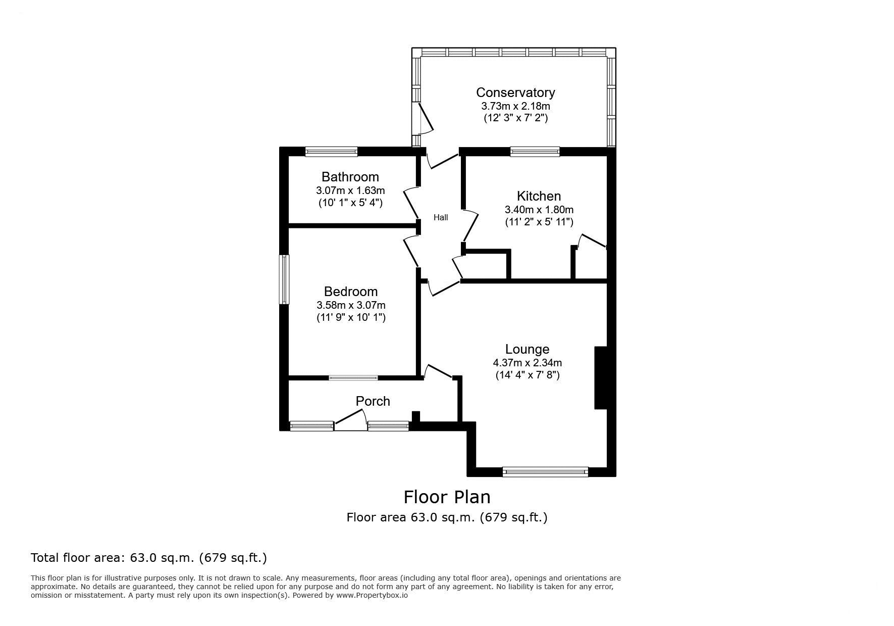 Porch: 14’21 x 4’10 (4.33m x 1.24m)