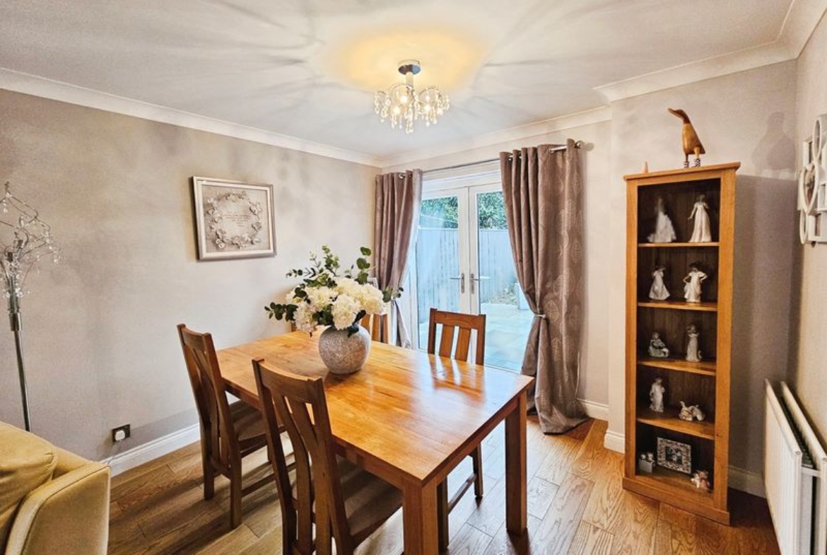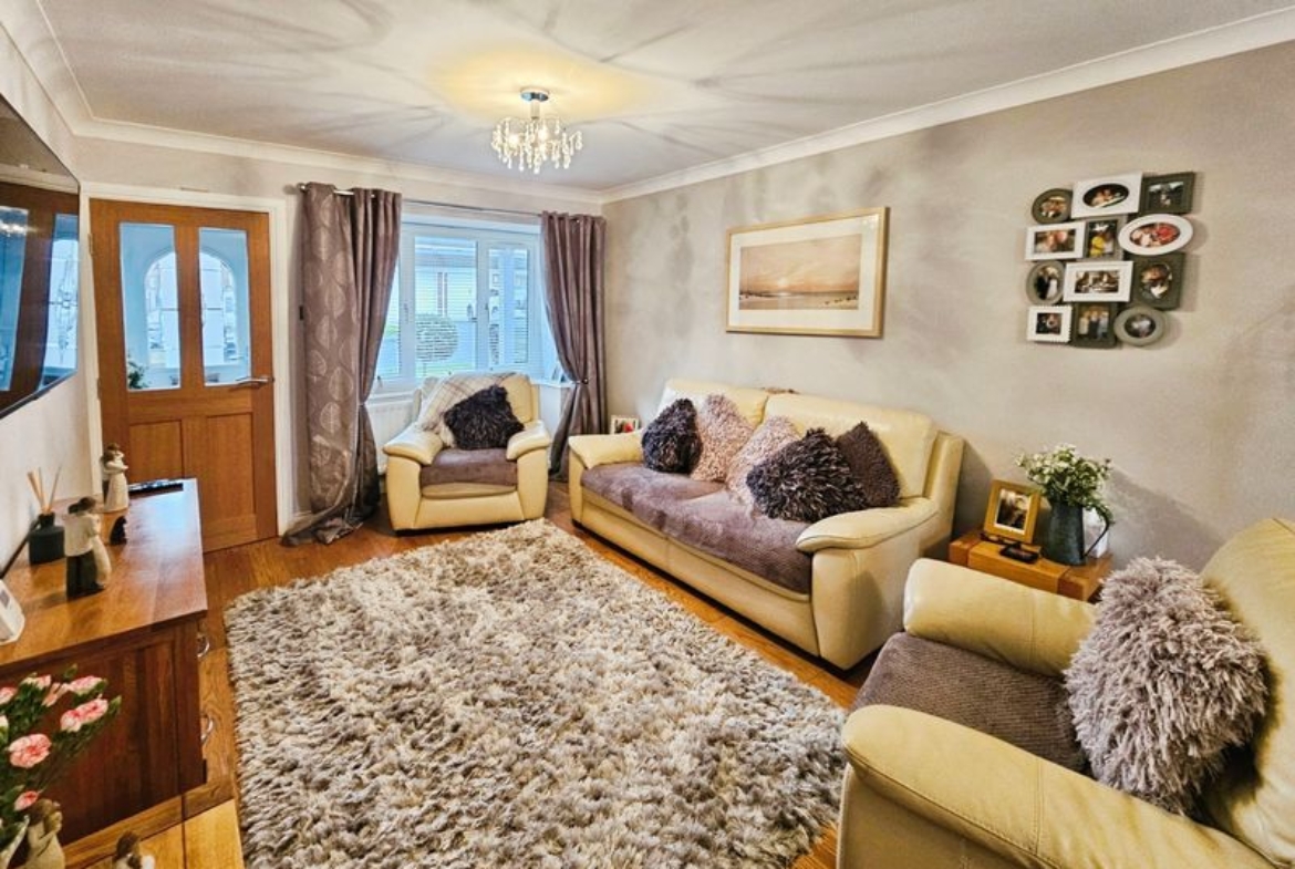 Double glazed window to front, double glazed patio doors to rear, television point, coving to ceiling.