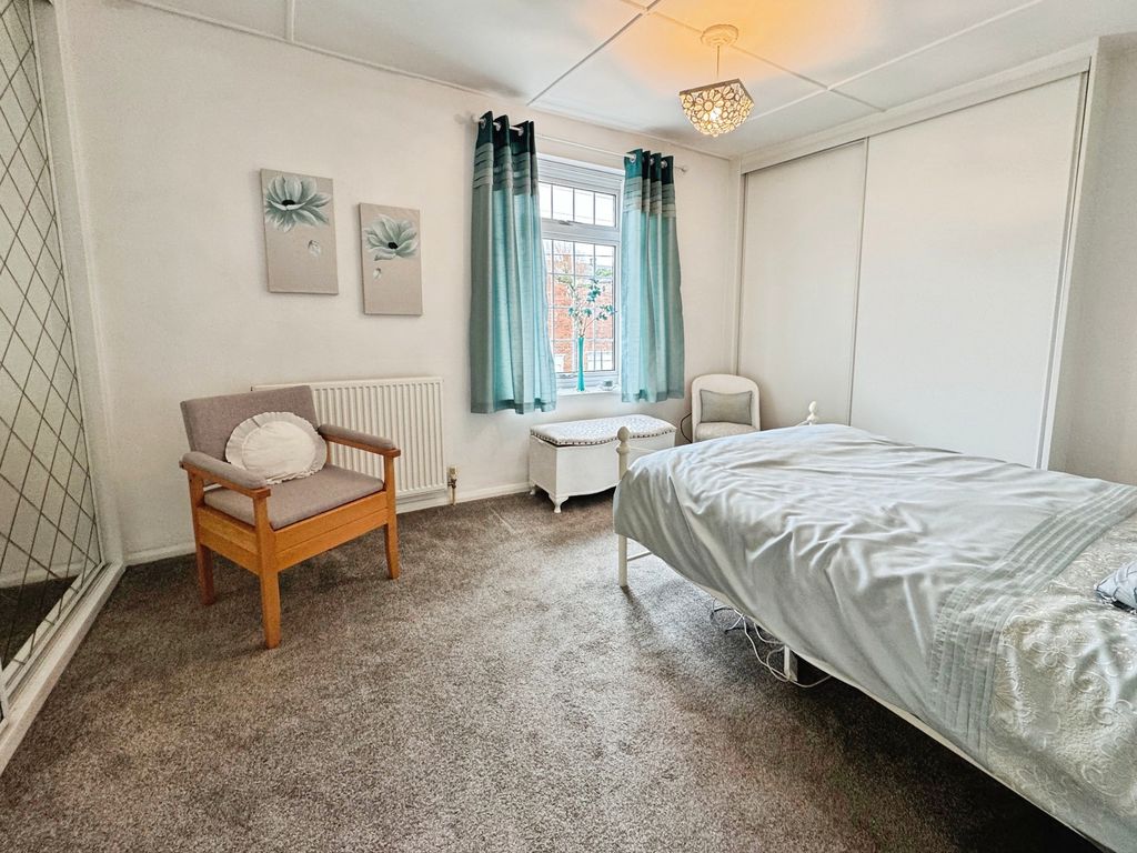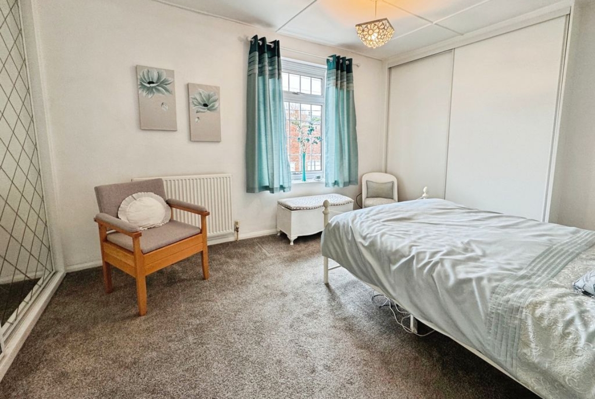 UPVC window, two fitted wardrobes and radiator.