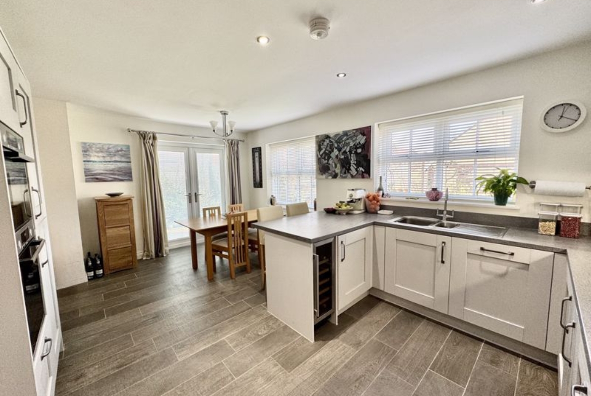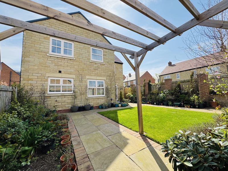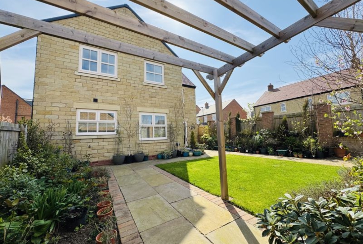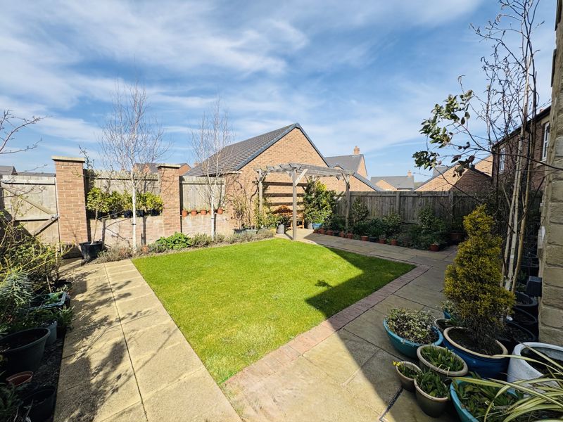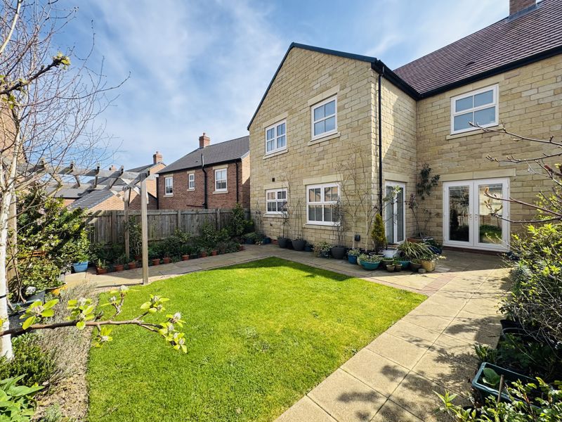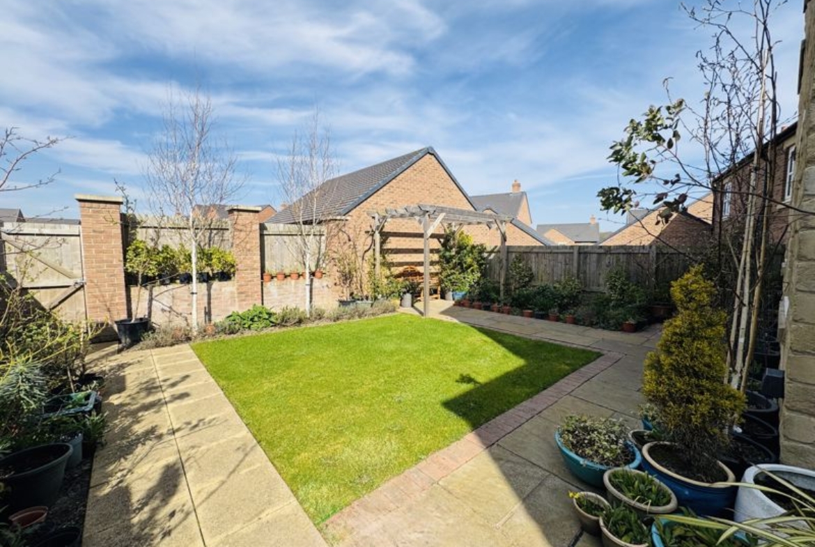 This rarely available, Cussins built, “Jasmine”, detached family home is the only one of its type showcasing a double garage on the development. Of show home standard throughout and enjoying a position not directly overlooked to the front and rear. With local schools, Metro, amenities and excellent transport links on your doorstep this sought after modern development enjoys high demand right now. Impressive entrance hallway with feature, turned central staircase to the first floor, downstairs cloaks/w.c., front facing snug/study, lounge showcasing a dual aspect with French doors opening out to the garden area, stunning family dining kitchen with integrated appliances, breakfast bar, dining area and French doors out to the garden area, separate utility. The downstairs benefits from beautiful Porcelanosa and Pergo flooring throughout. Gallery landing area, four double bedrooms, two with luxurious en-suite shower rooms, fabulous family bathroom. The wonderful garden has been thoughtfully landscaped and enjoys a sunny North/Westerly aspect, lawned area, feature paving, well stocked borders and pergola, double electric socket on exterior wall, gated access to the large, block paved double driveway and double garage. Freehold. EPC:B, Council Tax Band: E. Gas, Electric, Water, Heating, Drainage: Mains Connected. Estate Service Charge of: £124 per year. Broadband: Fibre, Mobile Phone Blackspot: No