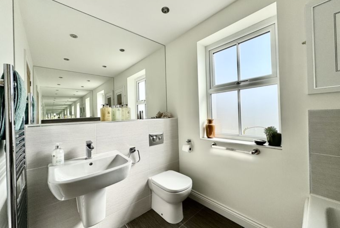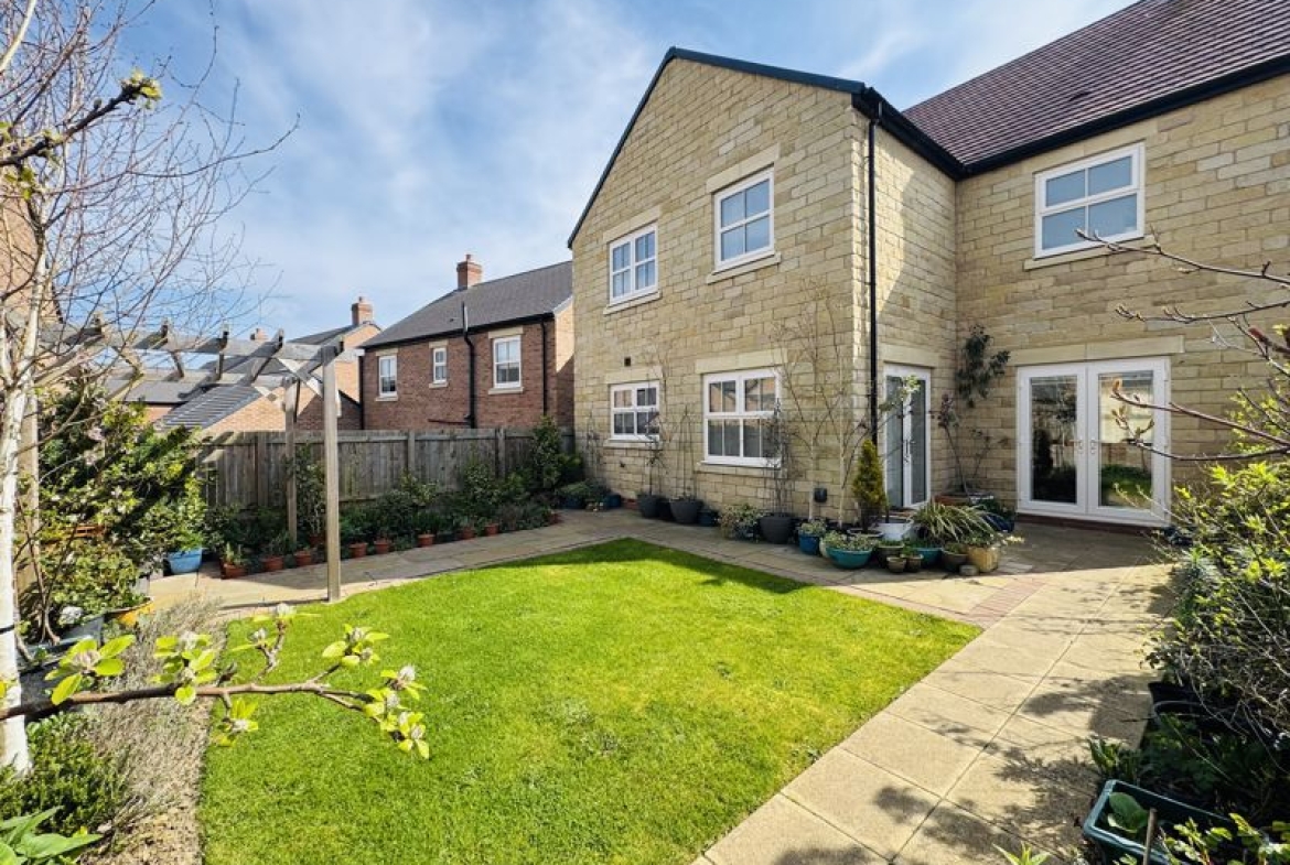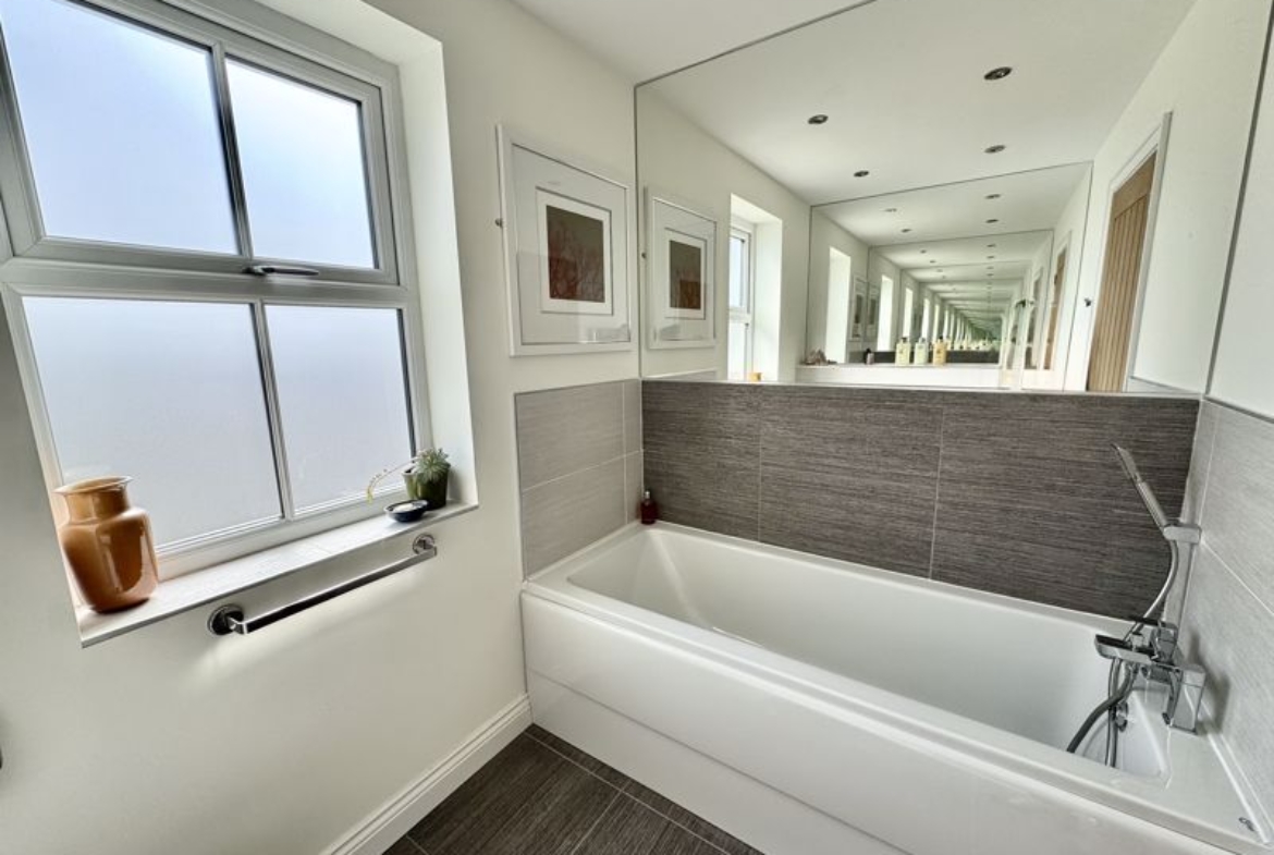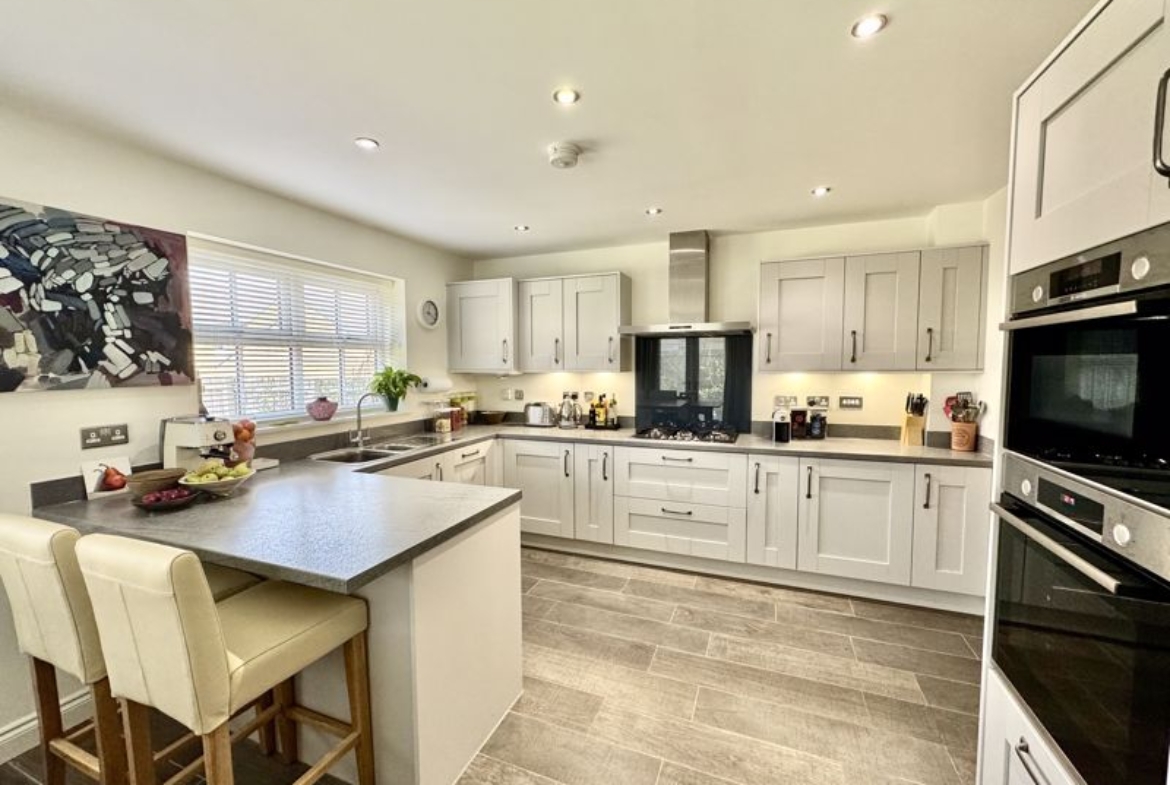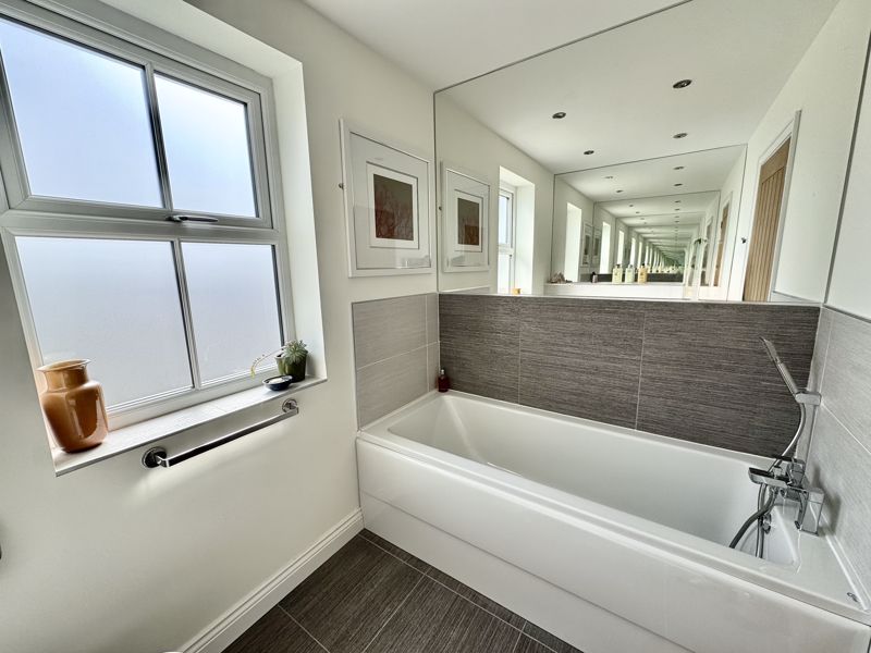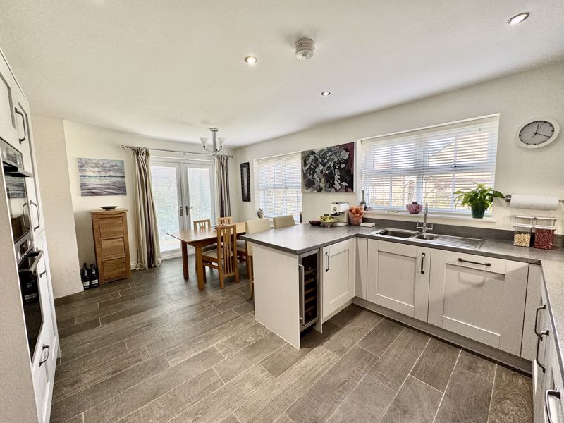 This rarely available, Cussins built, “Jasmine”, detached family home is the only one of its type showcasing a double garage on the development. Of show home standard throughout and enjoying a position not directly overlooked to the front and rear. With local schools, Metro, amenities and excellent transport links on your doorstep this sought after modern development enjoys high demand right now. Impressive entrance hallway with feature, turned central staircase to the first floor, downstairs cloaks/w.c., front facing snug/study, lounge showcasing a dual aspect with French doors opening out to the garden area, stunning family dining kitchen with integrated appliances, breakfast bar, dining area and French doors out to the garden area, separate utility. The downstairs benefits from beautiful Porcelanosa and Pergo flooring throughout. Gallery landing area, four double bedrooms, two with luxurious en-suite shower rooms, fabulous family bathroom. The wonderful garden has been thoughtfully landscaped and enjoys a sunny North/Westerly aspect, lawned area, feature paving, well stocked borders and pergola, double electric socket on exterior wall, gated access to the large, block paved double driveway and double garage. Freehold. EPC:B, Council Tax Band: E. Gas, Electric, Water, Heating, Drainage: Mains Connected. Estate Service Charge of: £124 per year. Broadband: Fibre, Mobile Phone Blackspot: No
