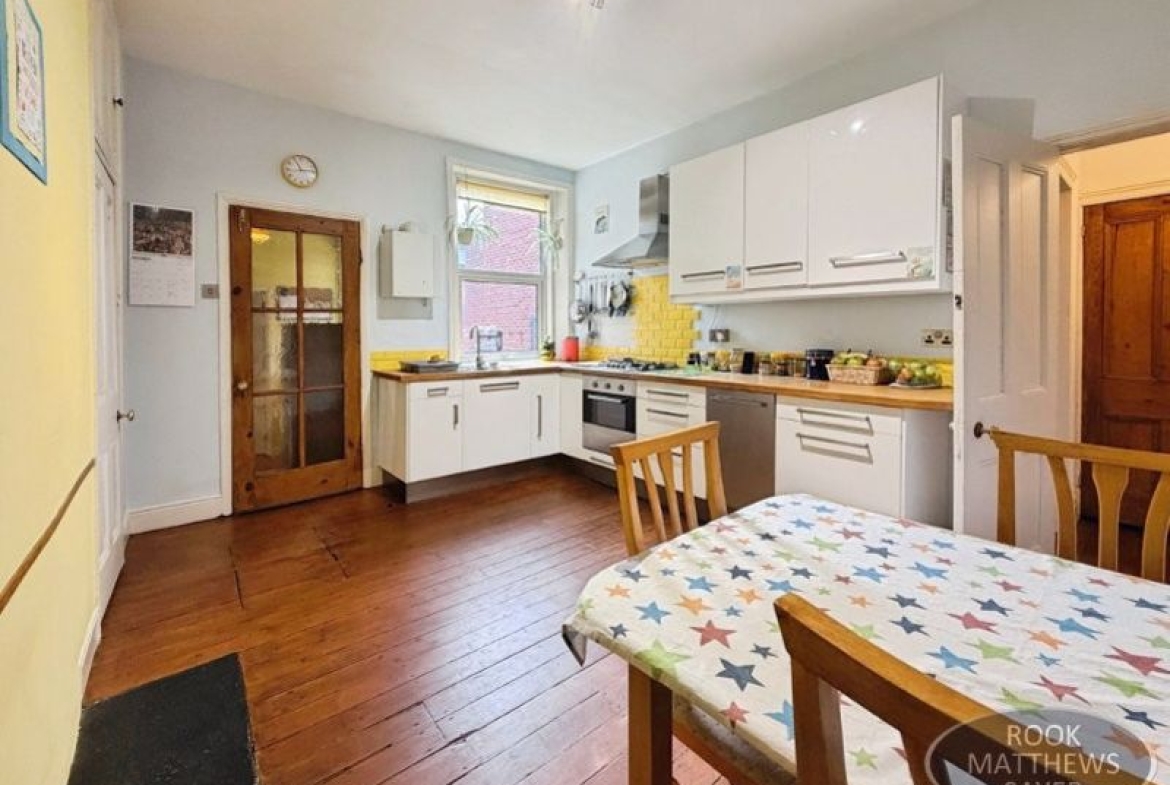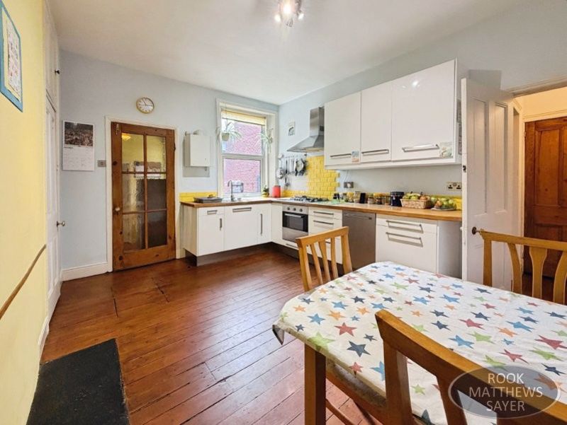 The generously proportioned dining kitchen benefits from ample natural light, offering an ideal setting for home-cooked meals and informal gatherings. A utility room adds further practicality, helping to keep daily life organised.