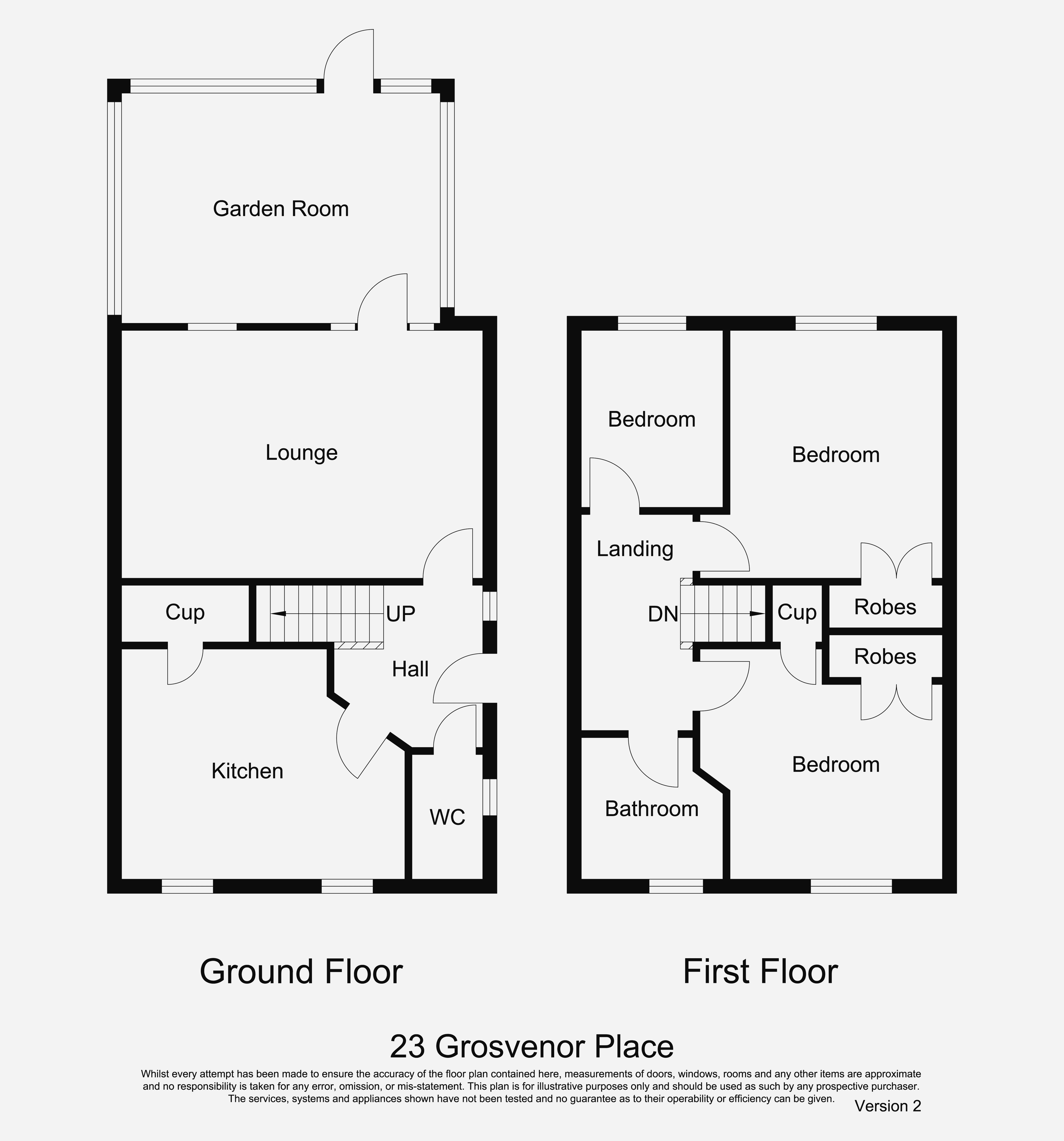 EXTERNALLY: front garden is laid mainly to lawn to the rear, there is a patio area, garden shed and 2 off street parking spaces.