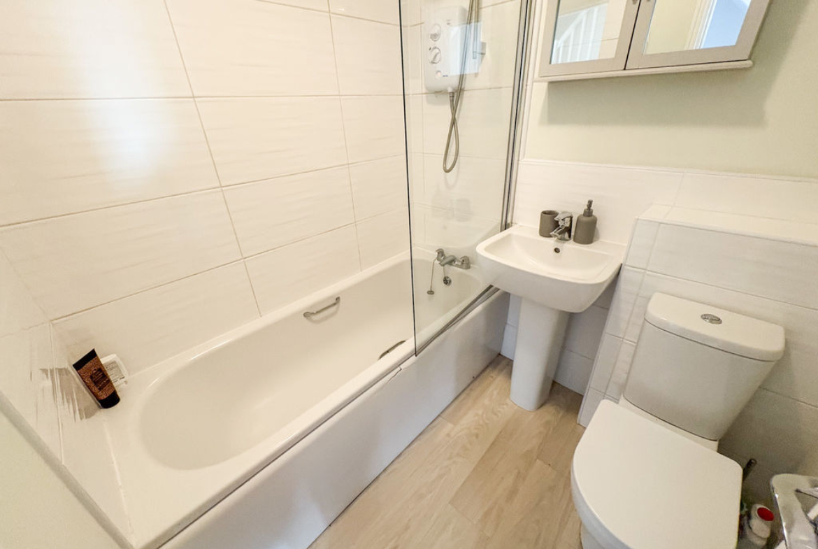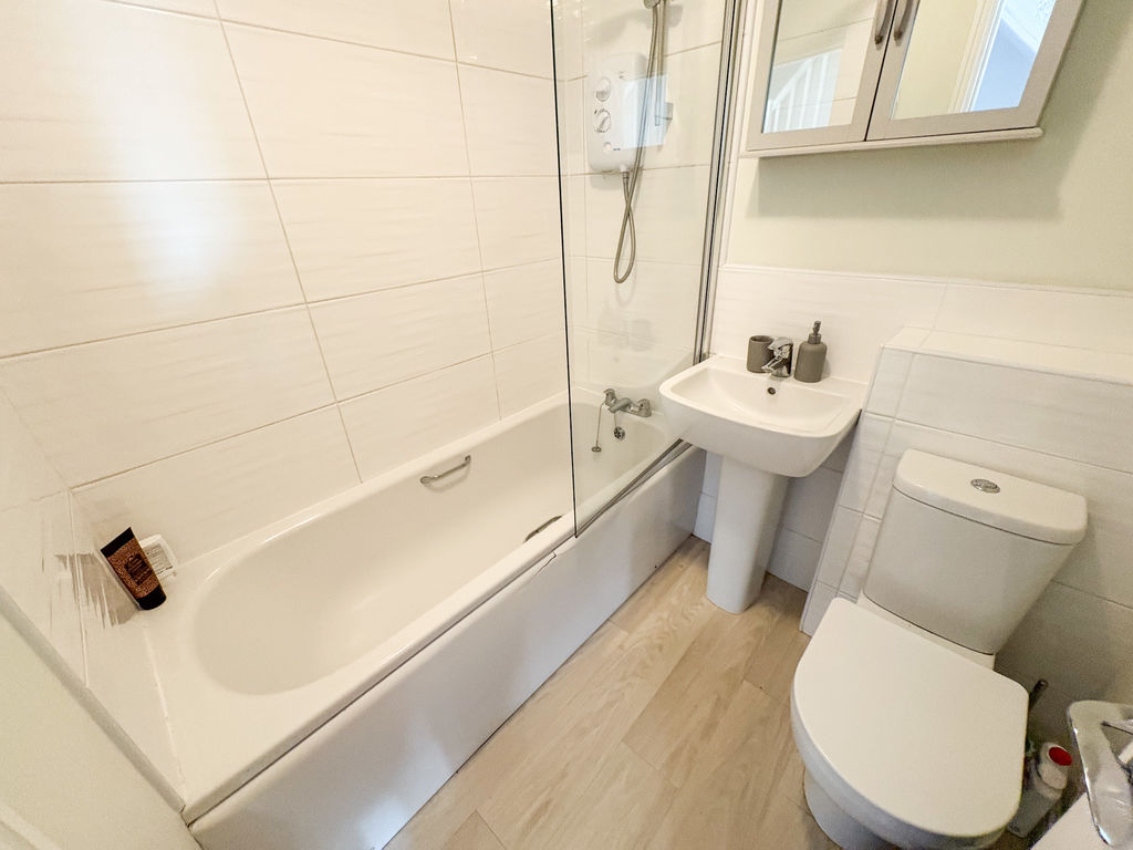 On the first floor, there are two good-sized bedrooms along with a family bathroom fitted with a modern suite and overhead shower. The home benefits from new carpets and updated flooring, giving it a fresh and tidy feel.
