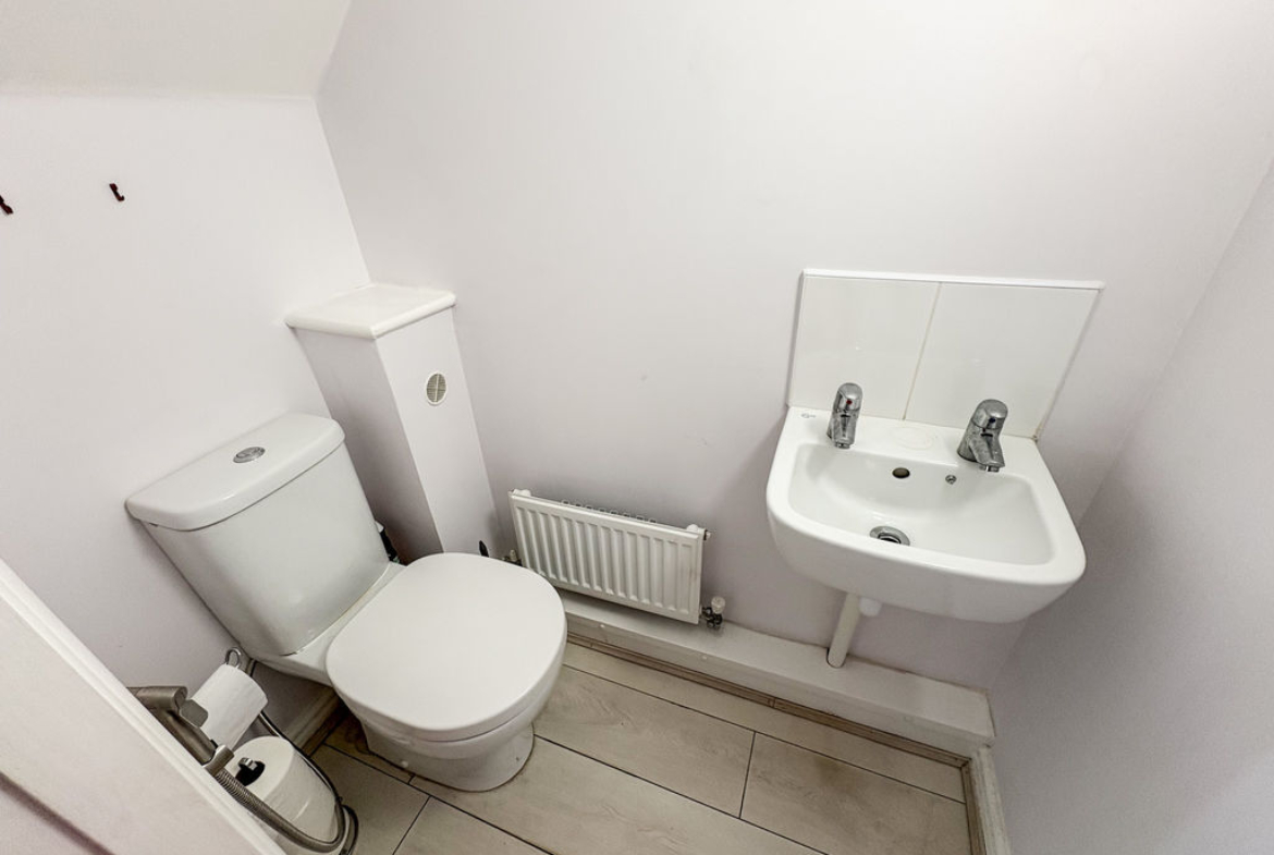 DOWNSTAIRS CLOAKS/W.C.: low level wc, wash hand basin and single radiator.