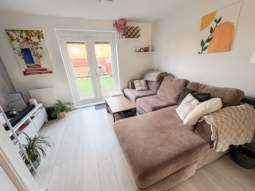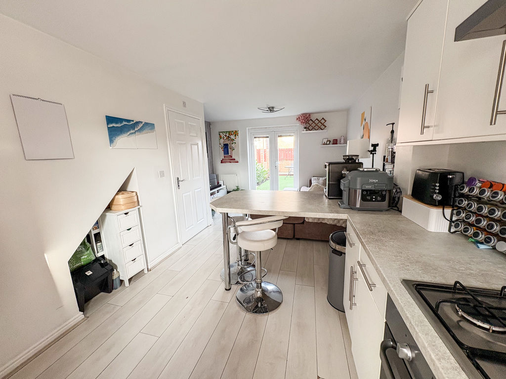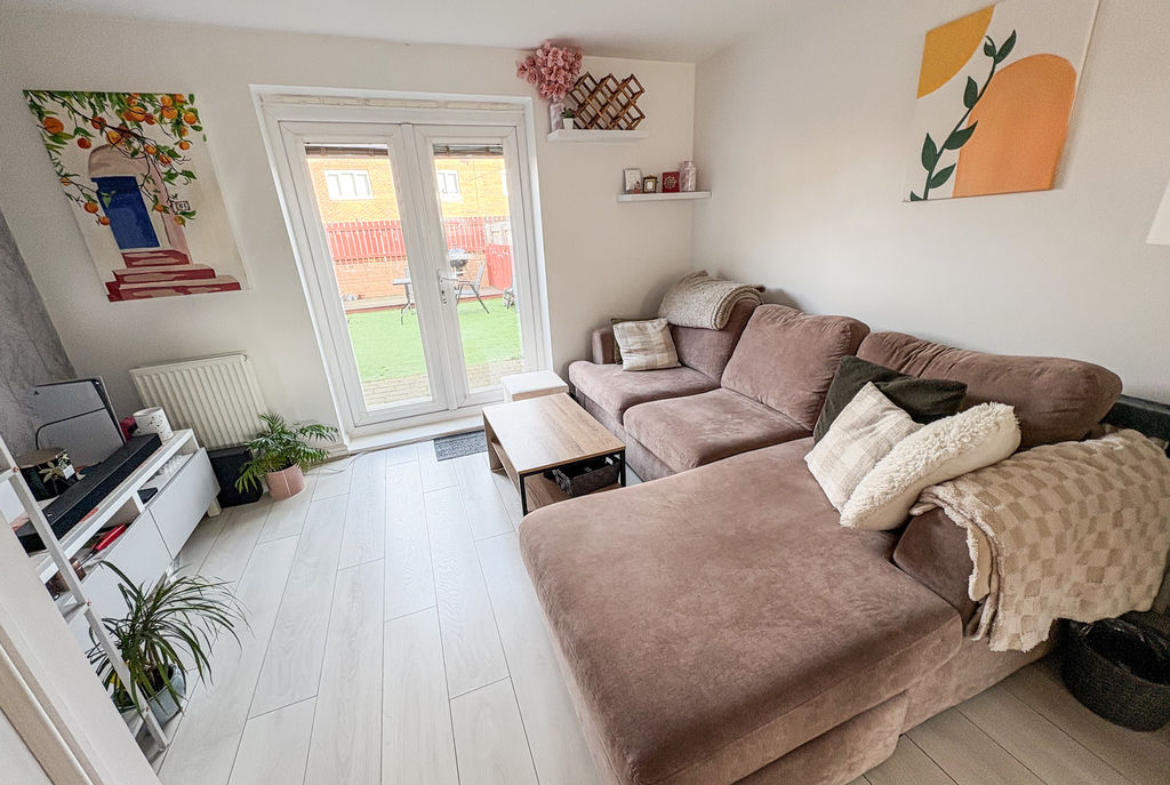 The ground floor features a welcoming entrance hallway leading into a spacious open-plan lounge, kitchen and dining area. This bright and functional space is perfect for everyday living, with French doors opening directly onto the rear garden. A convenient downstairs WC adds to the practicality of the layout.