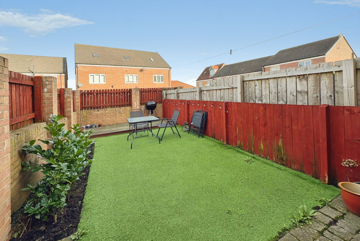 Outside, the rear garden has been landscaped with a patio area and low-maintenance artificial lawn, making it easy to enjoy with minimal upkeep. To the front, there is off-street parking.