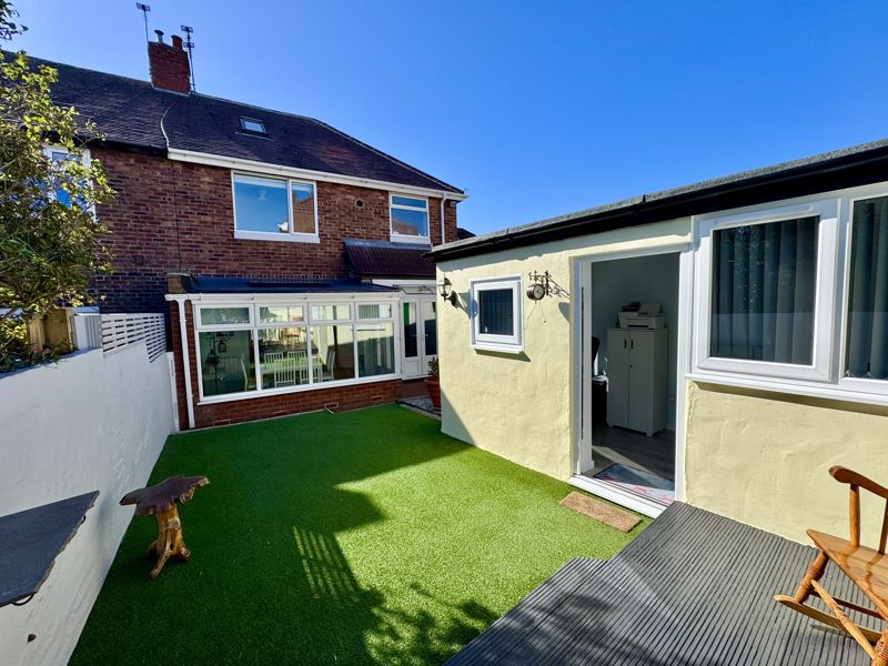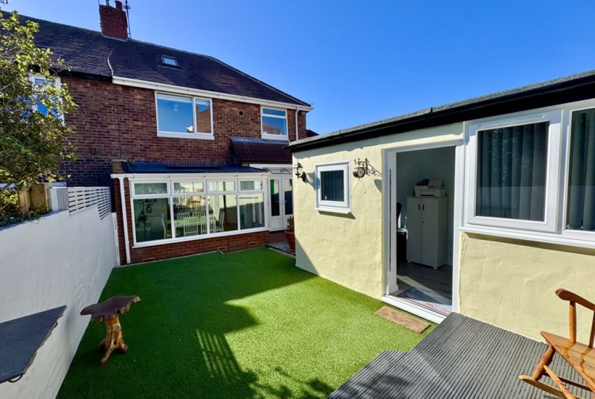 Gorgeous corner sited family semi-detached home, showcasing a fantastic, larger plot allowing for two separate driveways and a large one and a half sized garage with measurements of 17’7 x 15’4. In addition, the garden has been superbly designed to allow for maximum sunlight, enjoying composite decking areas, artificial lawn, additional patio and fabulous garden office which has been fully insulated, with electric points and lighting. Haig Avenue is within catchment for excellent local schools, within walking distance to the Metro and regular bus routes and has excellent transport links close by. It boasts a larger, spacious hallway with feature turned staircase up to the first floor, lounge through dining room with feature bay window, contemporary, living flame, fire, doors through to the gorgeous family room with roof lantern and French doors out to the rear garden, stunning family dining kitchen with breakfast bar and Range Cooker, (negotiable). First floor landing area, stylish family bathroom with separate shower cubicle, three bedrooms, the principal bedroom with bay window and ample fitted wardrobes, bedroom two also benefits from stylish and contemporary wardrobes. There are two useful loft rooms with Velux windows and storage. Front garden, block driveway, resin path, lawn and privacy hedging, side driveway and garage. Freehold. EPC: D, Council Tax Band: C. Gas, Electric, Water, Heating, Drainage: Mains Connected. Broadband: Fibre, Mobile Phone Blackspot: No