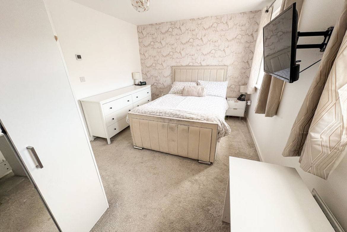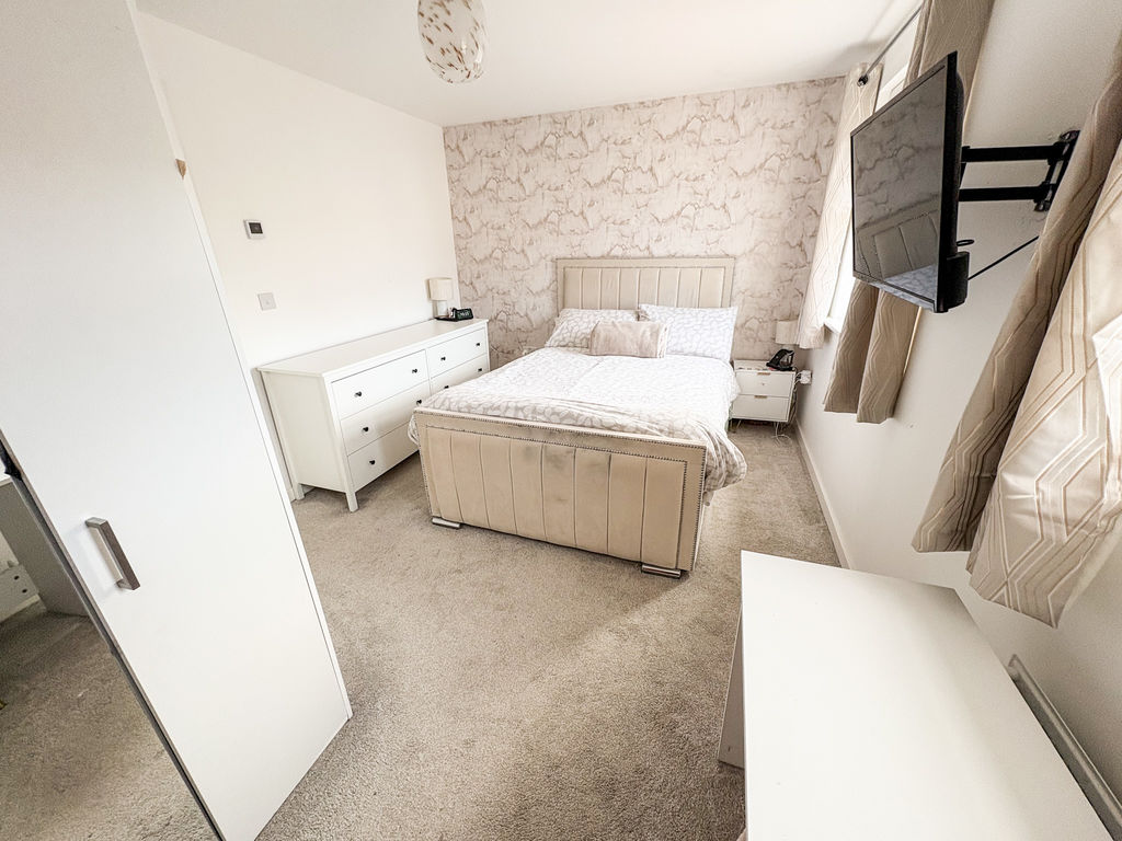 Upstairs, the property continues to impress with three well-proportioned bedrooms, including a spacious main bedroom benefitting from its own en-suite, alongside a sleek and modern family bathroom designed with both comfort and functionality in mind.
