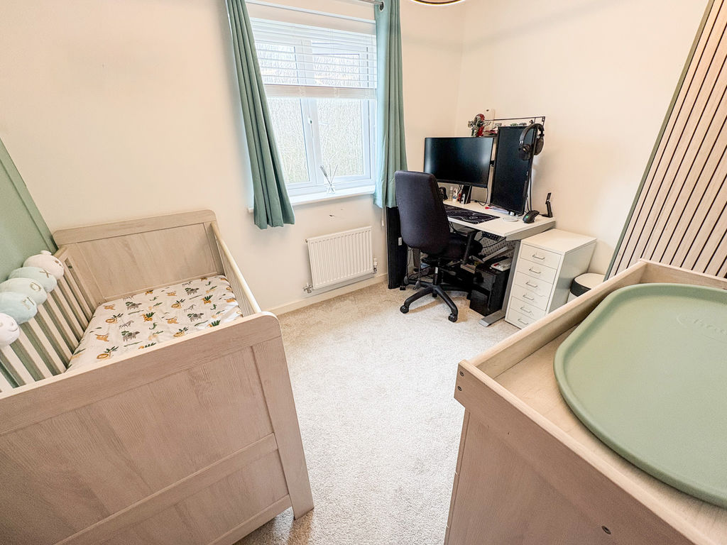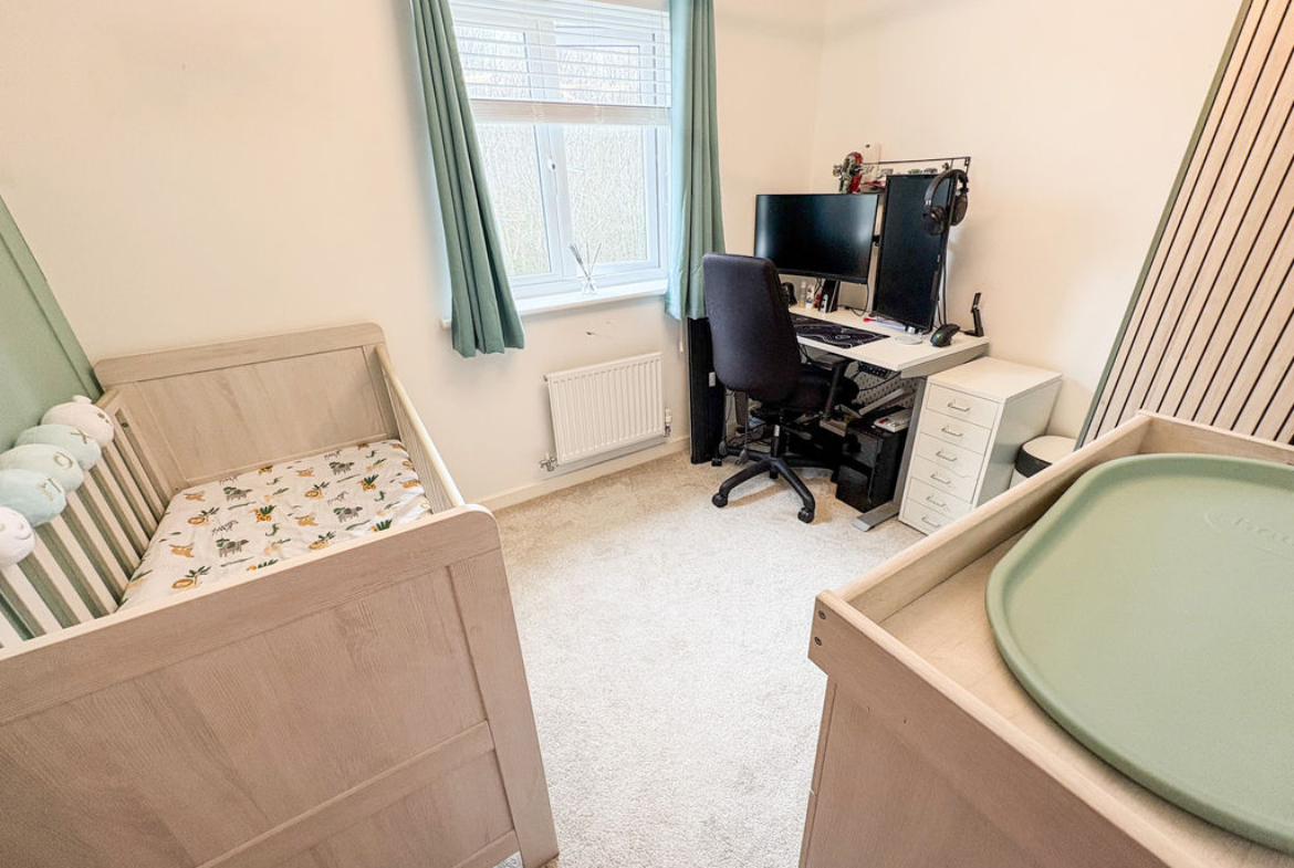 BEDROOM THREE: (rear): 9’80 x 7’96, (2.98m x 2.42m), double glazed window to rear, and single radiator.