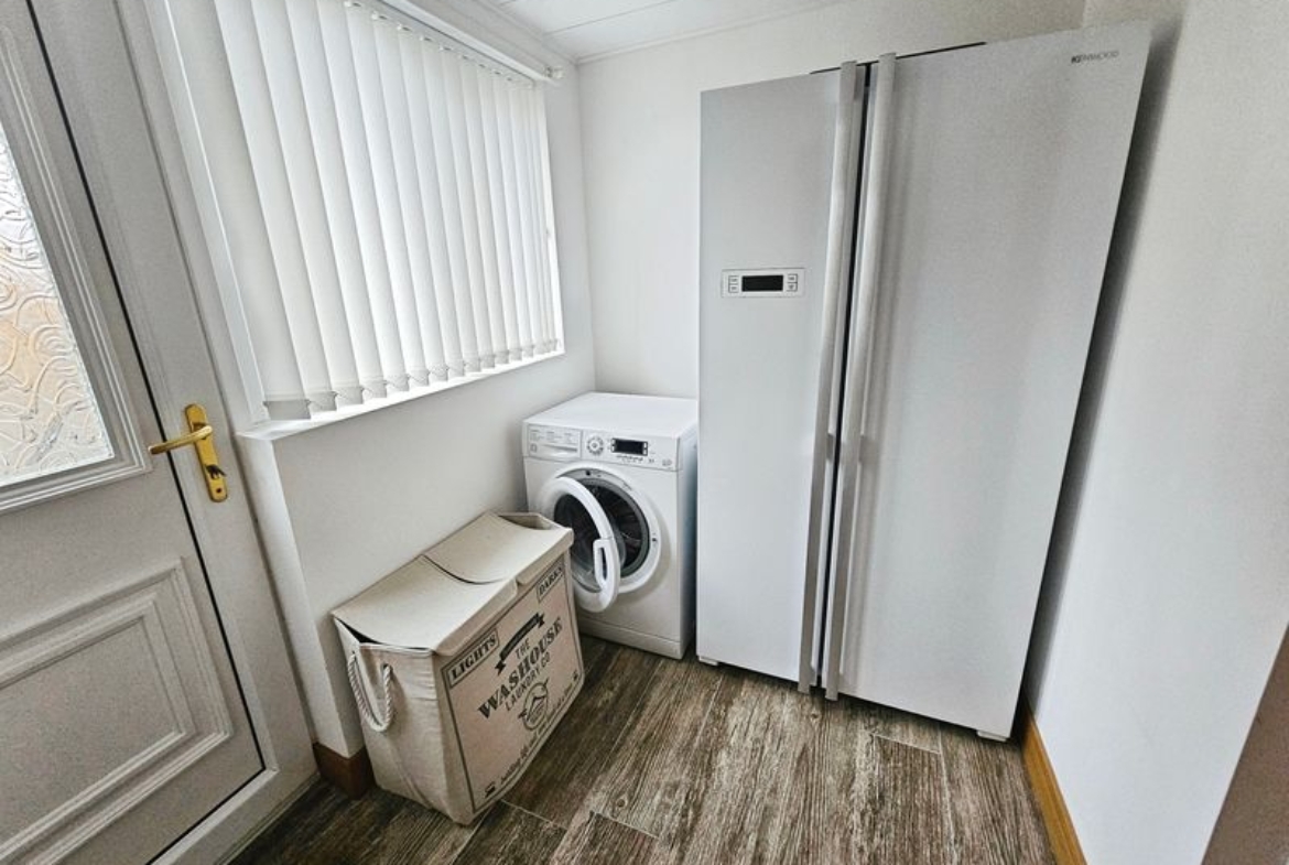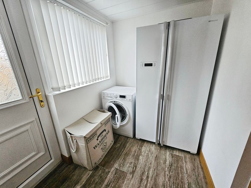 Double glazed window to rear, plumbed for washing machine, door to garage.