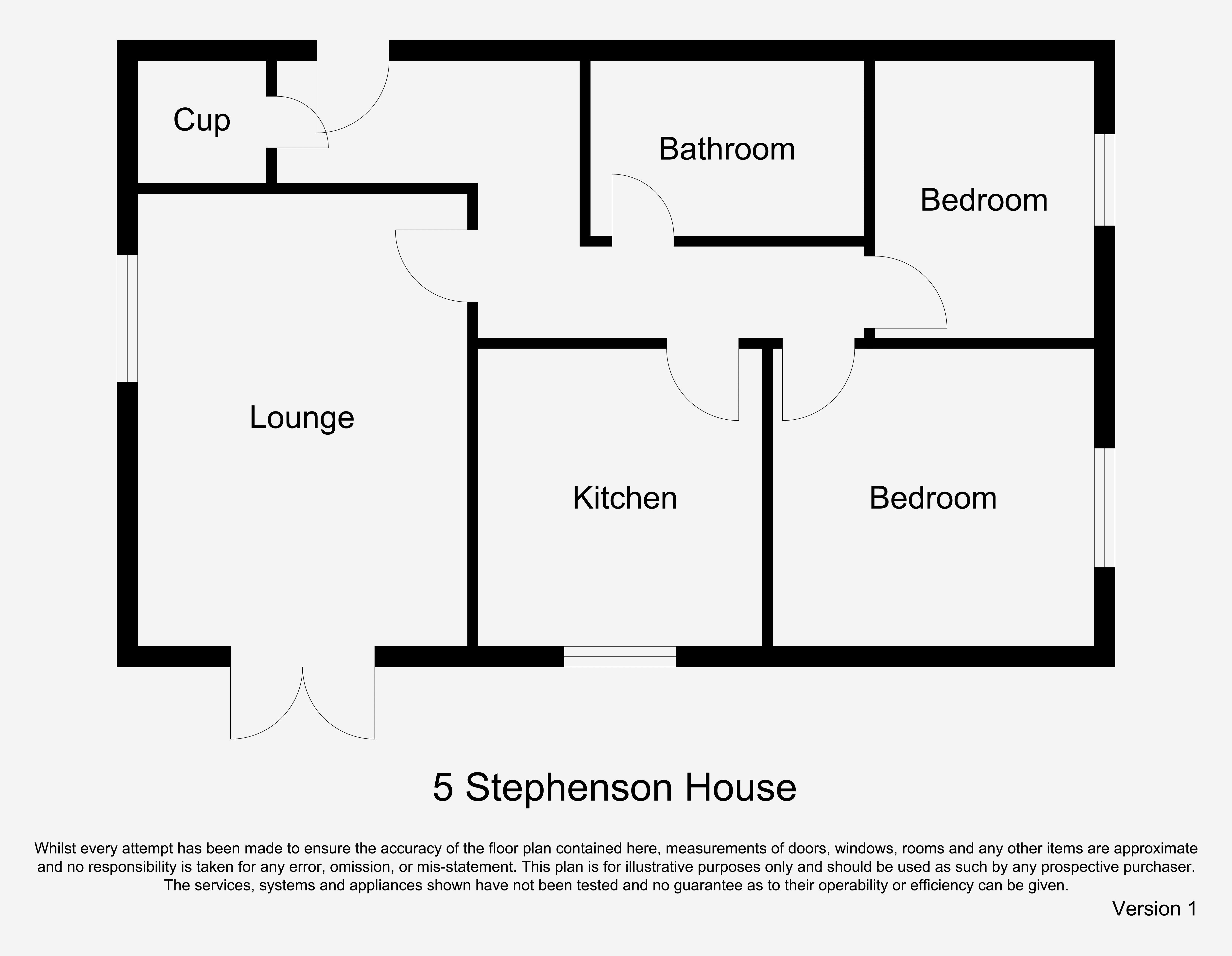 The layout comprises: entrance hall with built in storage cupboard; living room, kitchen, shower room/wc, main bedroom and second bedroom/dining room.