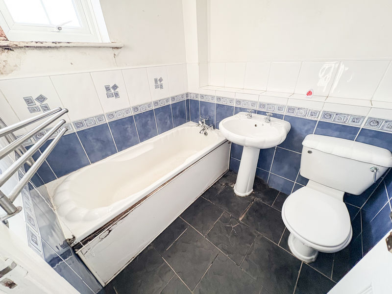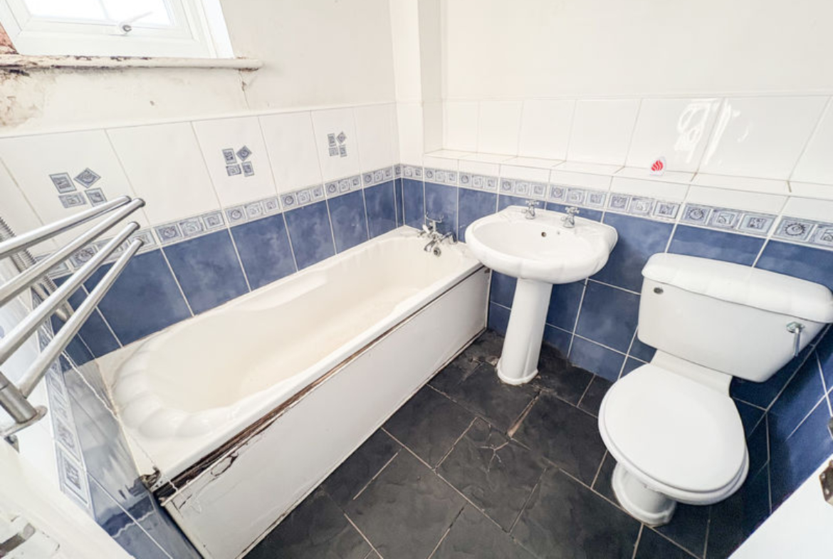 FAMILY BATHROOM: 3 piece suite comprising panelled bath, hand basin, low level w.c, and double glazed window to rear, single radiator and part tiling to walls.
