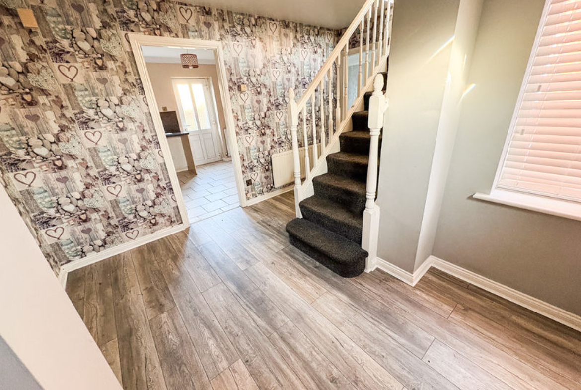 ENTRANCE HALLWAY: stairs to first floor landing and single radiator as well as double glazed window to side