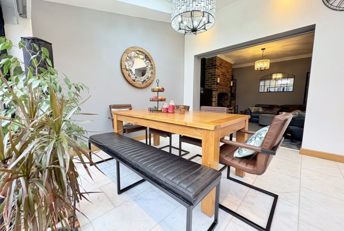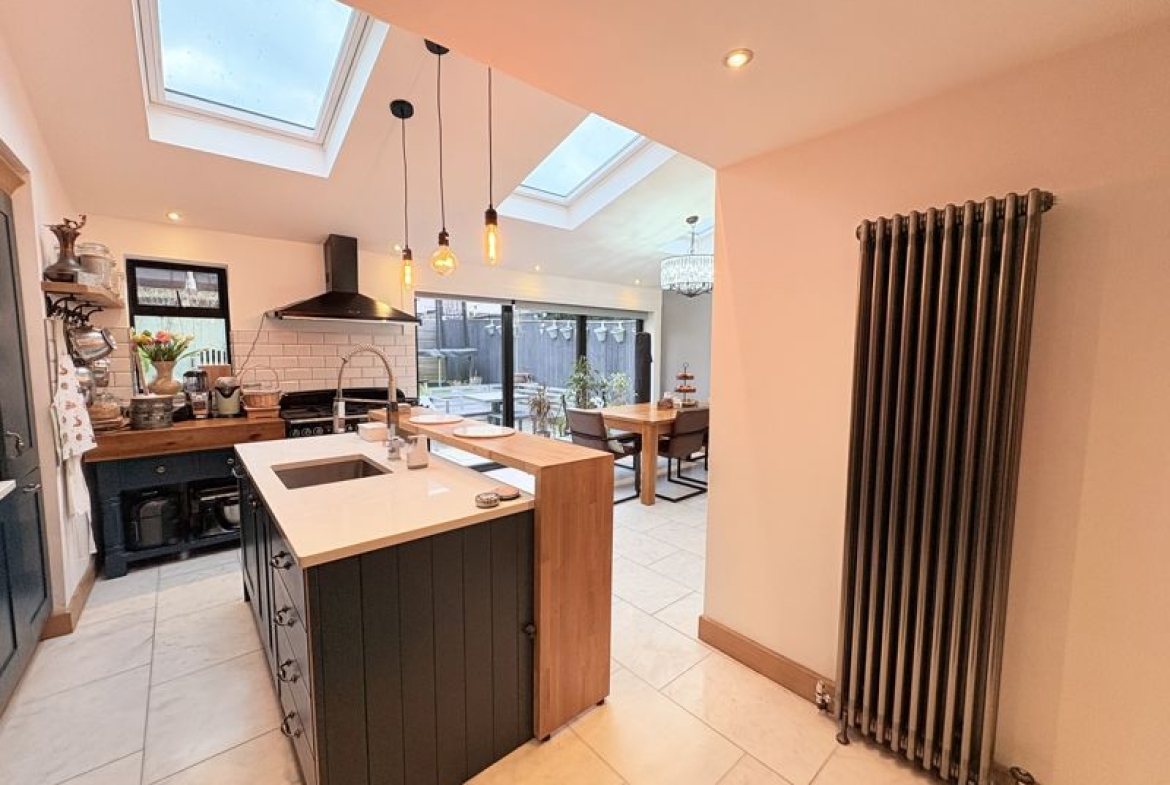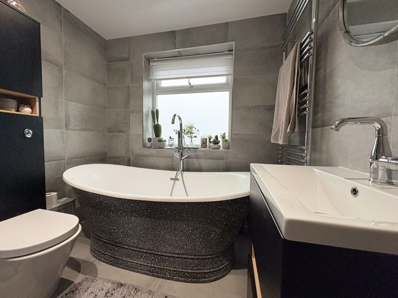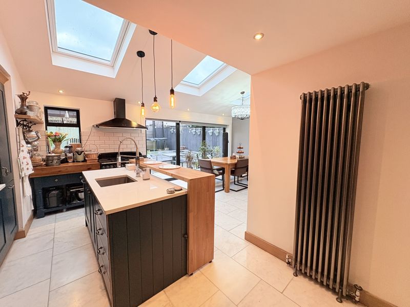Beautifully renovated, thoughtfully extended and finished with a meticulous eye for detail, this outstanding three-bedroom semi-detached home on Hazeldene presents a rare opportunity to acquire a property that blends character, craftsmanship and contemporary living to exceptional effect. Set on a popular street in Whitley Bay, the home immediately impresses with its stylish frontage and driveway parking before welcoming you into a beautifully designed hallway. Here, the quality is unmistakable — with solid oak bannisters, skirting boards and door frames, complemented by fresh décor. At the front of the property lies a generous bay-fronted living room, filled with natural light and centred around a striking stone feature fireplace, creating an inviting and elegant room ideal for relaxed evenings. The rear of the property opens into a remarkable open-plan kitchen, dining and snug area — a space that truly elevates the home. The full-width extension delivers impressive scale, enhanced by vaulted ceilings, Velux roof windows, and bi-folding doors framing views of the south-west facing garden. The kitchen itself is a standout feature, fitted with solid oak units, premium appliances, a range cooker, open shelving, and a central island with breakfast bar. Luxury marble flooring with underfloor heating provides year-round comfort and a sophisticated finish. A unique wine cellar hatch is cleverly integrated into the floor — a striking design element that gives the home real individuality. The snug/lounge area sits just off the dining space and features a beautiful multi-fuel stove set into an exposed brick chimney breast, offering the perfect cosy corner for evening relaxation. A modern downstairs W.C. completes the ground floor. Upstairs offers three well-proportioned bedrooms, all stylishly decorated and featuring high-quality finishes. The main bedroom includes extensive fitted wardrobes with sliding oak doors, providing excellent storage without compromising space. The family bathroom is a real showpiece — a luxurious, contemporary suite with large-format grey tiling, a stunning freestanding bathtub, a walk-in shower with rainfall head, sleek vanity unit and chrome towel radiator. The rear garden enjoys a south-west facing orientation, ensuring afternoon and evening sunshine — ideal for dining, entertaining and relaxation. The space has been landscaped to include a large stone patio, raised beds, well-kept borders and a lawned area, making it a low-maintenance yet attractive outdoor setting. To the front, a private driveway provides off-street parking. Freehold, EPC: TBC, Council Tax Band: C, Gas, Electric, Water, Heating, Drainage: Mains Connected. Broadband: Fibre to Premises, Mobile Phone Blackspot: No