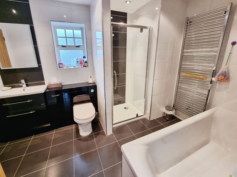 The property provides three reception rooms, cloakroom/W.C, conservatory, modern kitchen, and utility room. The first floor offers four double bedrooms, with three benefiting from en-suite facilities, ideal for those seeking privacy and convenience. Outside, the house features a garden and parking, supporting both family living and day-to-day practicality.
