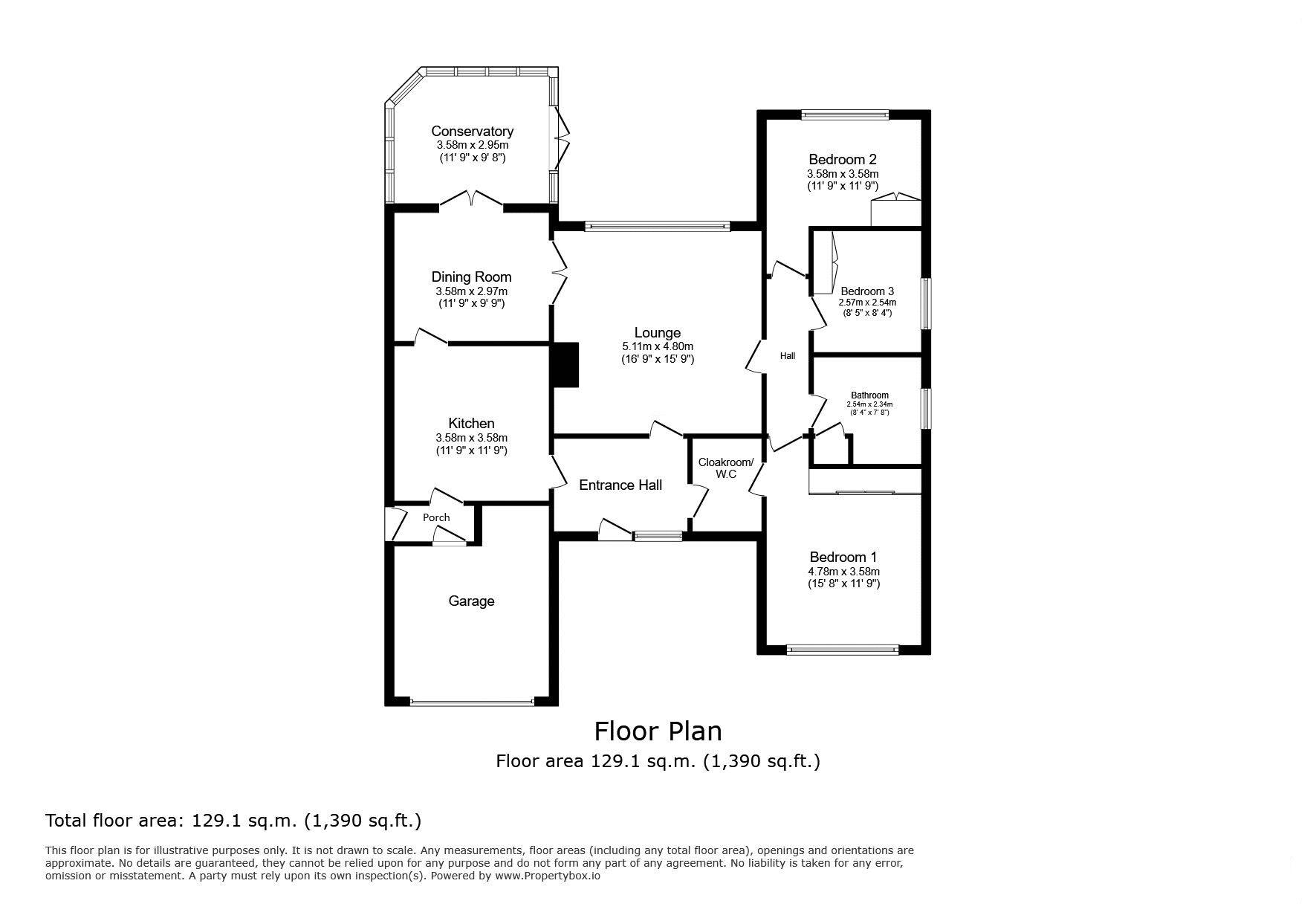 Conservatory: 9’84 x 11’92 (2.95m x 3.58m)