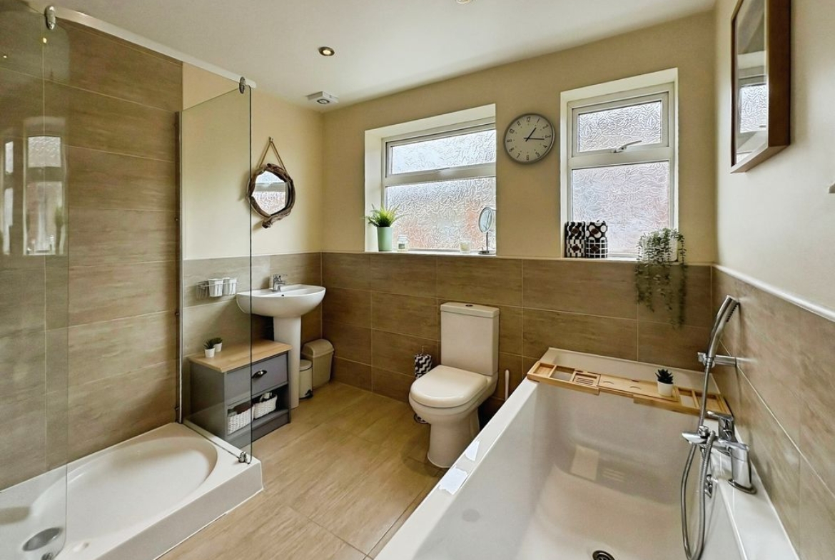 • Large family bathroom with bath and separate walk-in shower