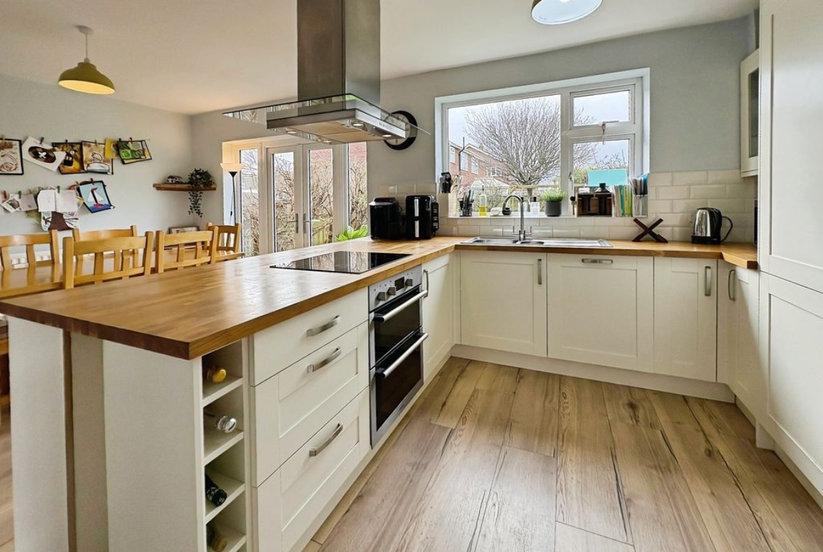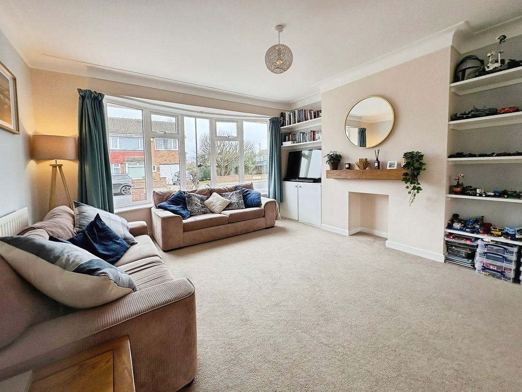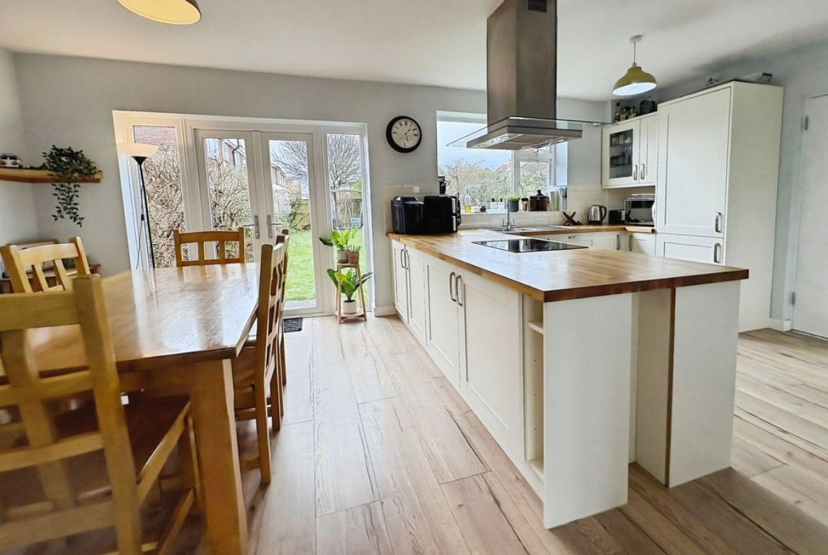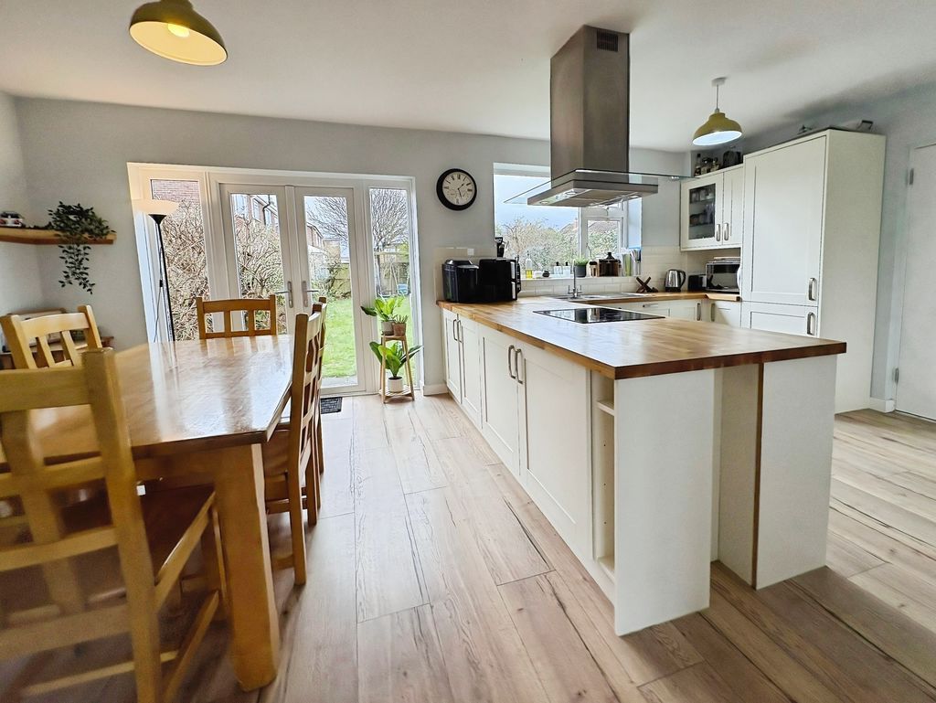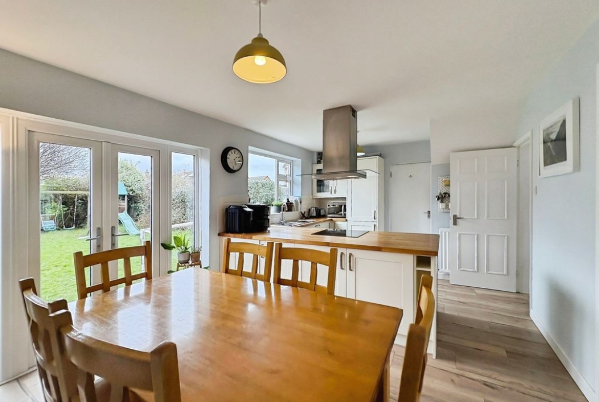 Occupying a pleasant position within the popular residential area of Marden, this well-presented three bedroom semi-detached home offers spacious accommodation, a superb open-plan dining kitchen and a particularly generous rear garden. The property immediately feels bright and welcoming on arrival. The living room sits to the front of the home and is a spacious reception room centred around a large bay window which draws in plenty of natural light while providing an open outlook towards the front garden. To the rear of the property is the standout feature of the home a superb dining kitchen designed with both everyday living and entertaining in mind. The kitchen area is fitted with a range of modern wall and base units with wooden work surfaces and integrated appliances, while a central peninsula provides additional preparation space and storage. The room flows effortlessly into a generous dining area where French doors open directly onto the rear garden, creating an excellent connection between indoor and outdoor living. Upstairs the property offers three well-proportioned bedrooms. The principal bedroom is a particularly generous room with a large window allowing plenty of natural light. Bedroom two is another good sized double room overlooking the rear garden, while the third bedroom provides an ideal bedroom, study or home office. A spacious bathroom completes the first floor, fitted with both a bath and separate shower enclosure. Externally the home continues to impress. The rear garden is notably large, mainly laid to lawn and offers excellent space for outdoor entertaining or simply enjoying the open outlook. To the front the property benefits from off-street parking and access to an attached garage which provides useful storage or workshop space. Altogether this is a well-presented home offering generous accommodation, a standout open-plan kitchen and a particularly impressive garden, all positioned within easy reach of local schools, amenities and the coastline. Freehold, EPC: C, Council Tax Band: C, Electricity, Water, Sewerage, Heating mains connected, Broadband: FTTP, Mobile coverage blackspot: No