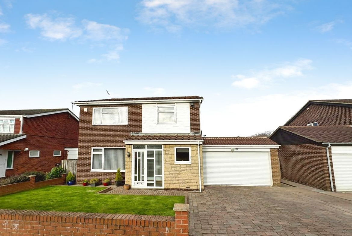 Positioned within the well regarded Beaumont Park area of Whitley Bay, this substantial detached home offers an impressive footprint, a versatile layout and a beautifully private rear garden, a combination that makes it stand out within this established residential setting. The property sits comfortably on its plot with a wide frontage, double width driveway and integral garage, while internally the space unfolds in a way that feels both practical and adaptable. A welcoming hallway leads through to a front facing living room, centred around an electric fire and filled with natural light, creating a warm and inviting place to unwind. To the rear, the layout becomes more sociable. The dining room connects seamlessly into the conservatory, providing an additional reception space overlooking the garden, ideal for everyday living as well as entertaining. The kitchen is well proportioned and split into defined working and dining areas, fitted with a range cooker, ample units and worktop space, with direct access to both the garden and garage. A separate study offers flexibility for home working or quieter use, alongside a convenient ground floor W.C. Upstairs, the sense of space continues with four well proportioned bedrooms. The principal bedroom benefits from fitted wardrobes, as does the second bedroom, while the remaining rooms provide flexibility for family life, guests or additional workspace. A spacious bathroom completes the first floor. Externally, the rear garden is a key feature that is private, established and well maintained, with patio, lawn and mature planting creating a peaceful setting. To the front, a lawned garden and double driveway lead to the integral garage. A well balanced home in a consistently popular location, offering space, flexibility and excellent potential.
