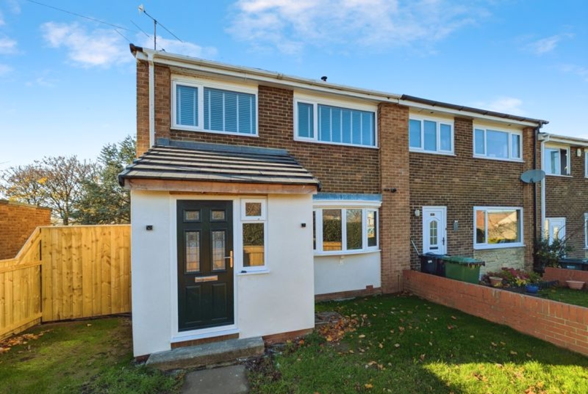 A stunning three bedroom end-terraced house with gardens and driveway parking on a popular estate in Crawcrook. The property is very well-presented throughout and has undergone recent refurbishment. Comprising entrance porch, hallway, living room with wood-burning stove, modern open-plan dining kitchen with fitted appliances and a Velux window for additional light, beautiful first floor wet-room style bathroom with bath and separate shower, master bedroom with fitted wardrobes, second double bedroom and a third single bedroom. Externally there is a garden to the front and a lawned garden with driveway for off-street parking to the rear. Available now on an unfurnished basis.