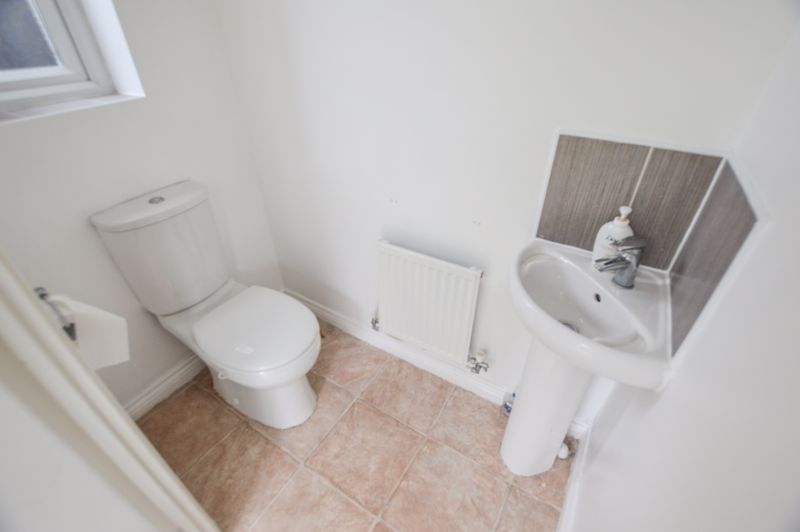 DOWNSTAIRS CLOAKS/W.C.: Double glazed window to side, pedestal wash hand basin, low level w.c, single radiator.