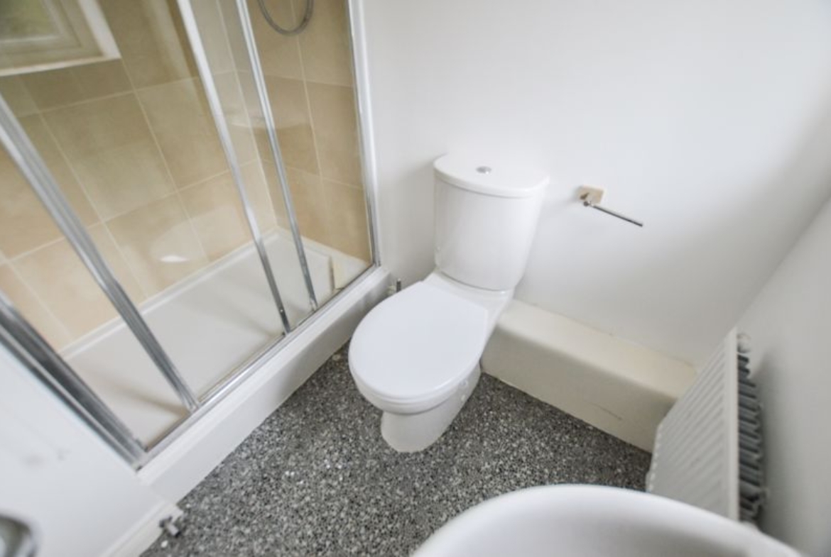 Double glazed window to rear, low level w.c, wash hand basin, shower cubicle, part tiling to walls, radiator