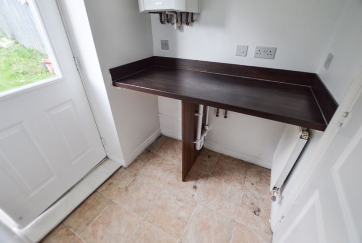 Space for fridge freezer, plumbed for washing machine, door to rear garden.