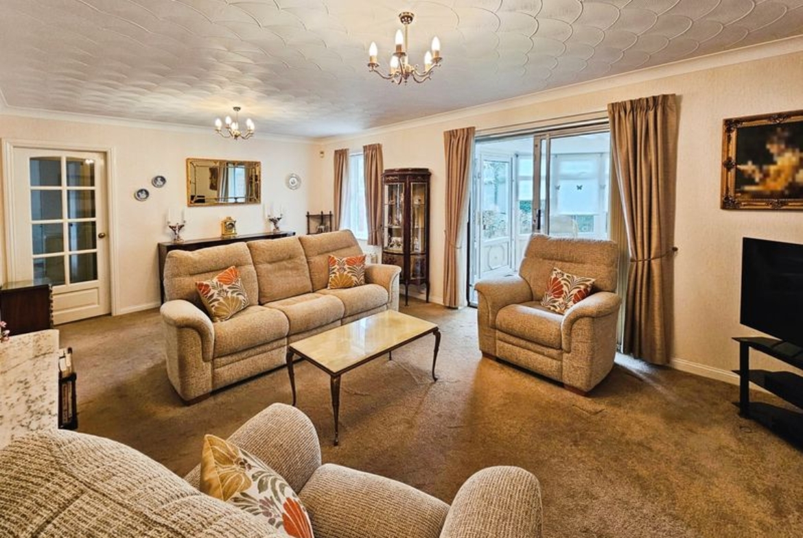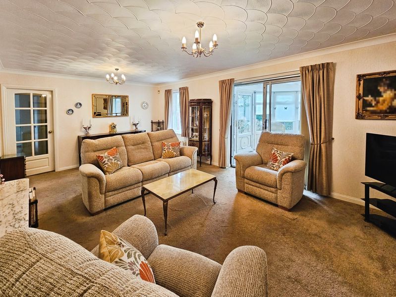 Double glazed window to rear, double glazed patio doors to conservatory, fire surround with electric fire, coving to ceiling.
