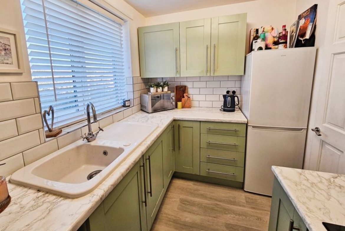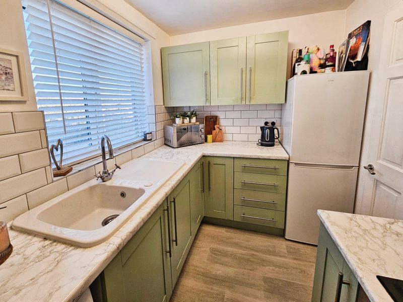 Double glazed window to rear, single radiator, fitted with a range of wall, floor drawer units with co-ordinating roll edge work surfaces, co-ordinating sink unit and drainer with mixer tap, tiled splash backs, built in electric fan assisted oven, electric hob with extractor fan above, space for fridge/freezer, plumbed for washing machine, laminate flooring.