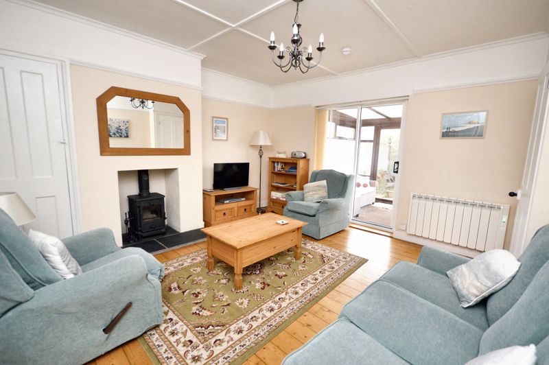 Double-glazed sliding patio doors to conservatory | Exposed floorboards |