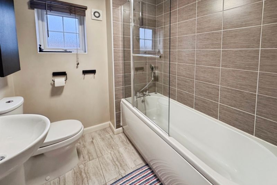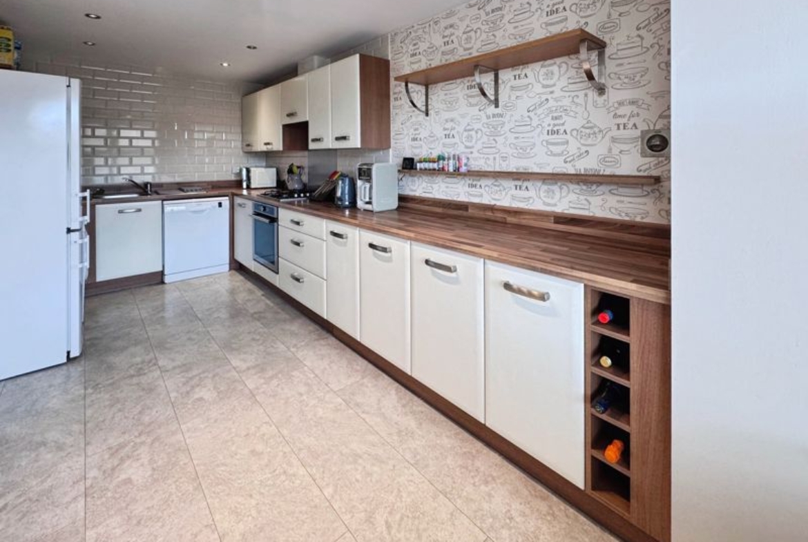 The accommodation includes a spacious reception room with an orangery and access to the garden, creating an inviting social area. The kitchen benefits from natural light, making it a pleasant environment to prepare family meals. Upstairs, the master suite features a double bedroom with en-suite and built-in wardrobes. Two further double bedrooms—one also with built-in wardrobes—provide flexibility for family or guests, while a fourth single bedroom could serve as a bedroom or study. The main bathroom includes a shower over the bath.