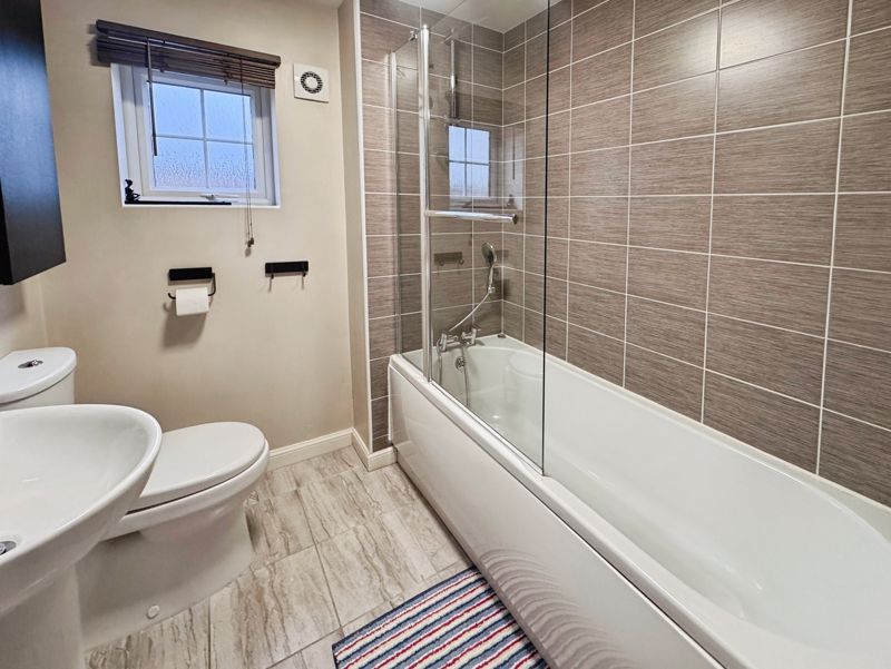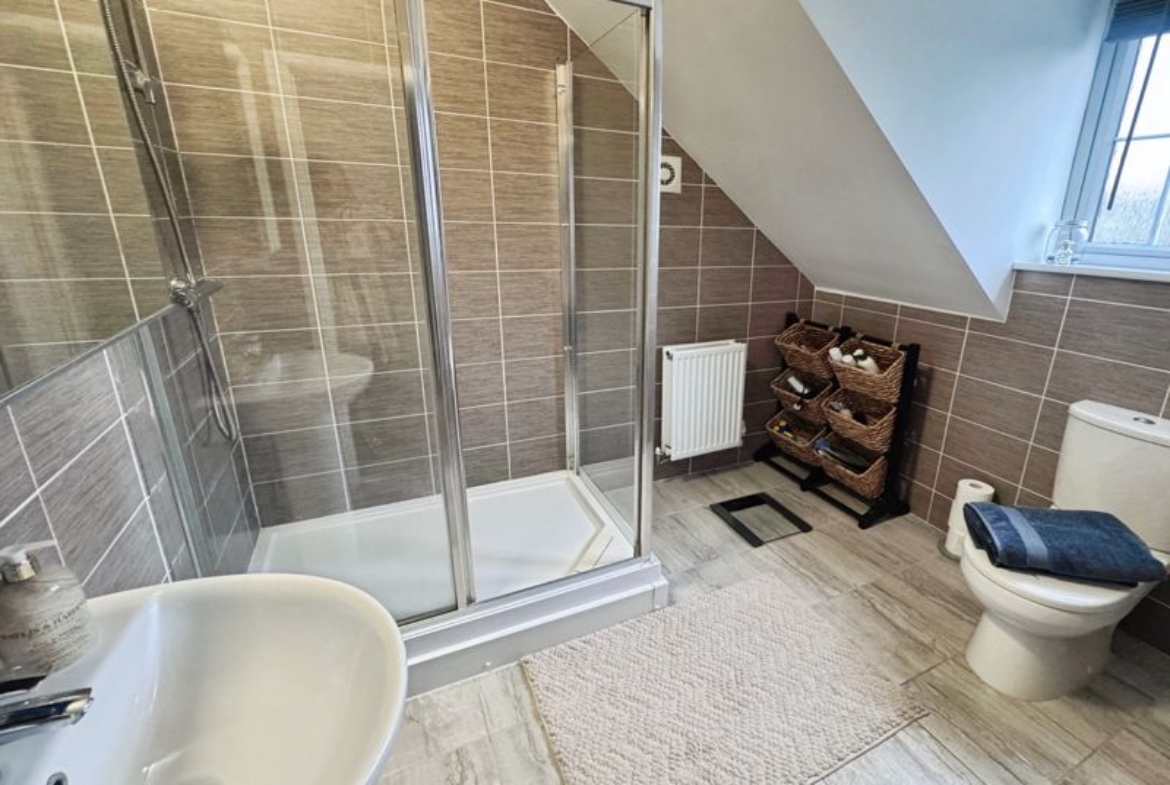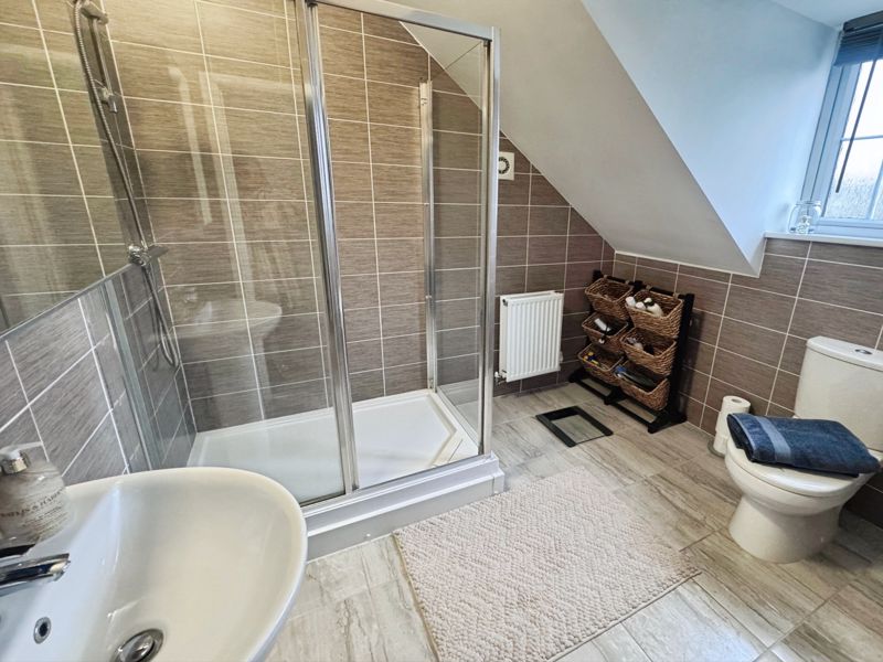 UPVC window, large shower, low level wc, wash hand basin, fully tiled and radiator.