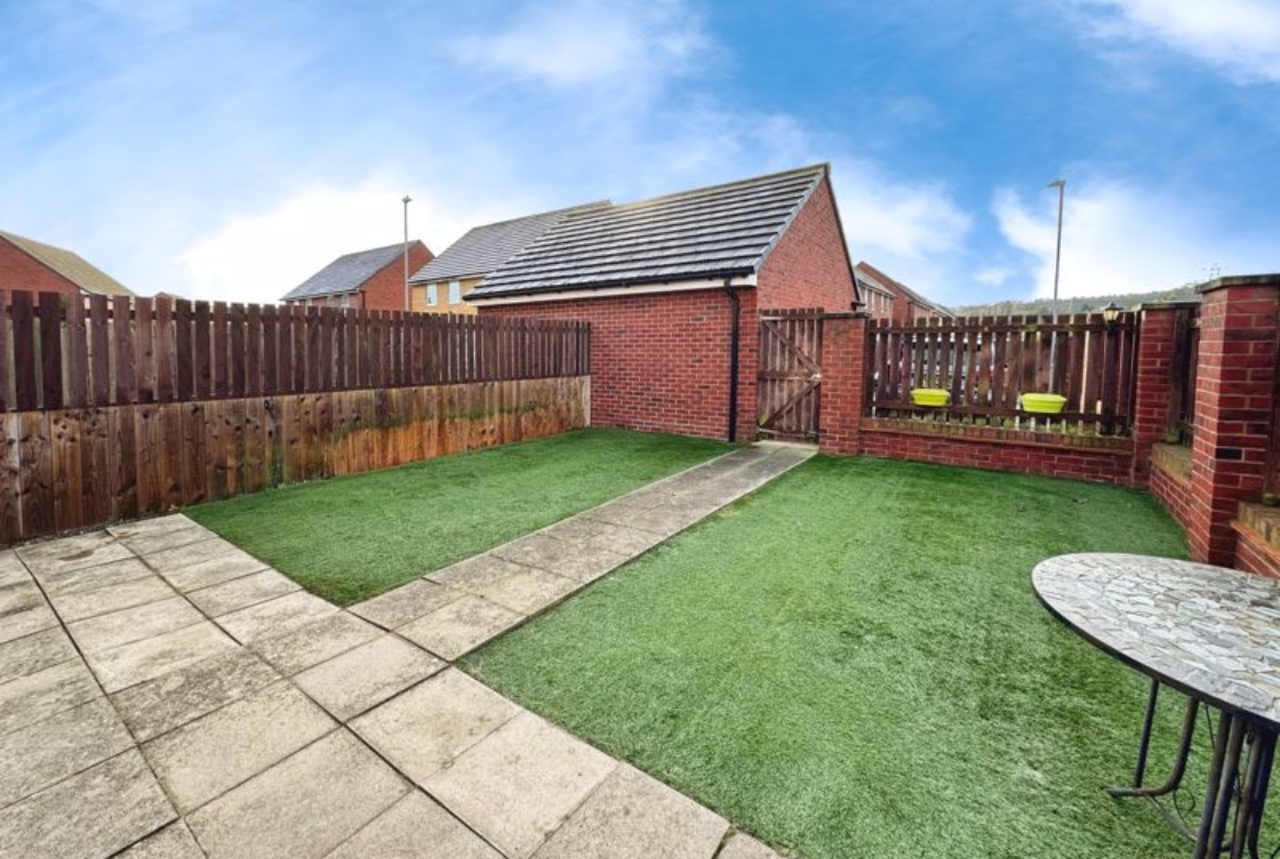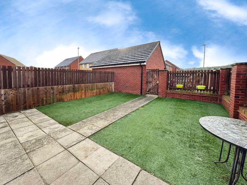 There is a South facing garden to the rear with artificial lawn and patio.  There is a garage and allocated bay providing off street parking.