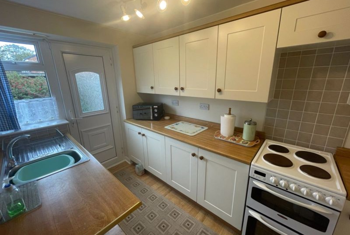 window to rear, stainless steel sink, free sanding cooker, laminate