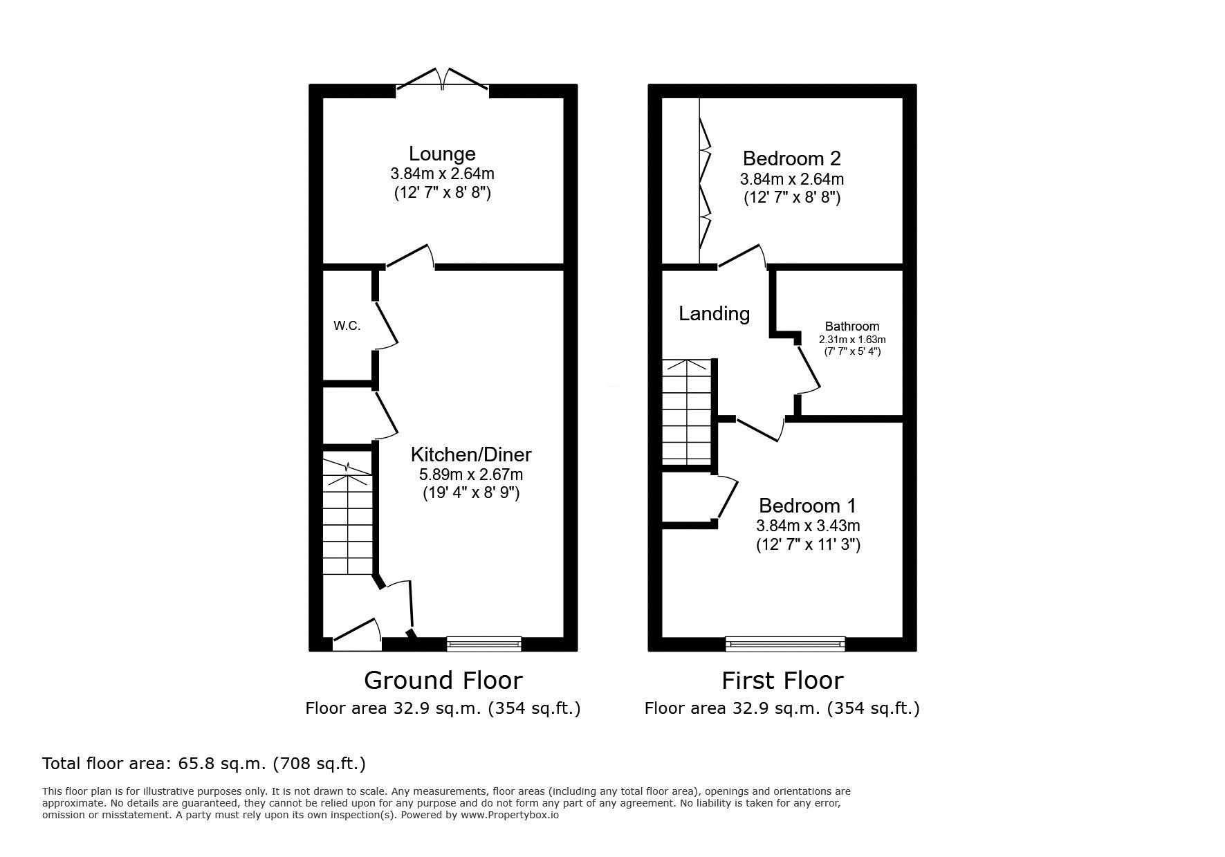Lounge: 12’74 x 8’82 (3.84m x 2.64m)