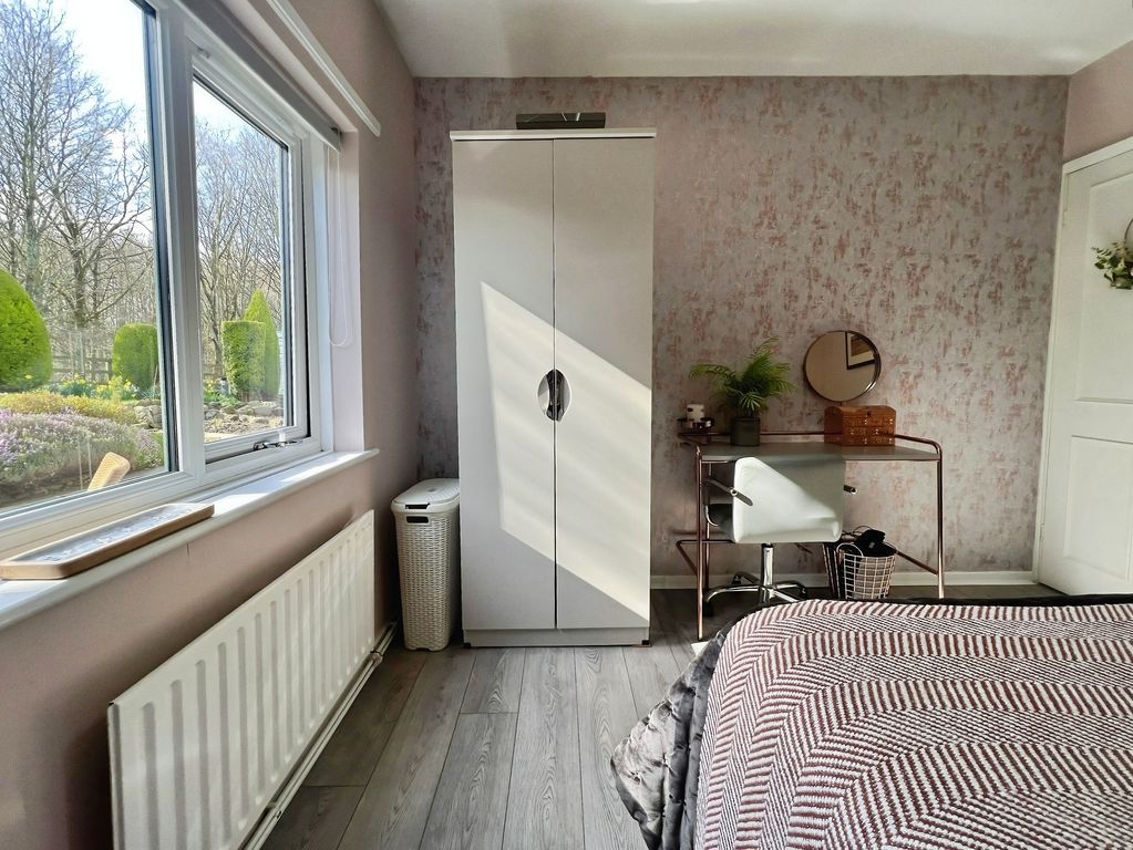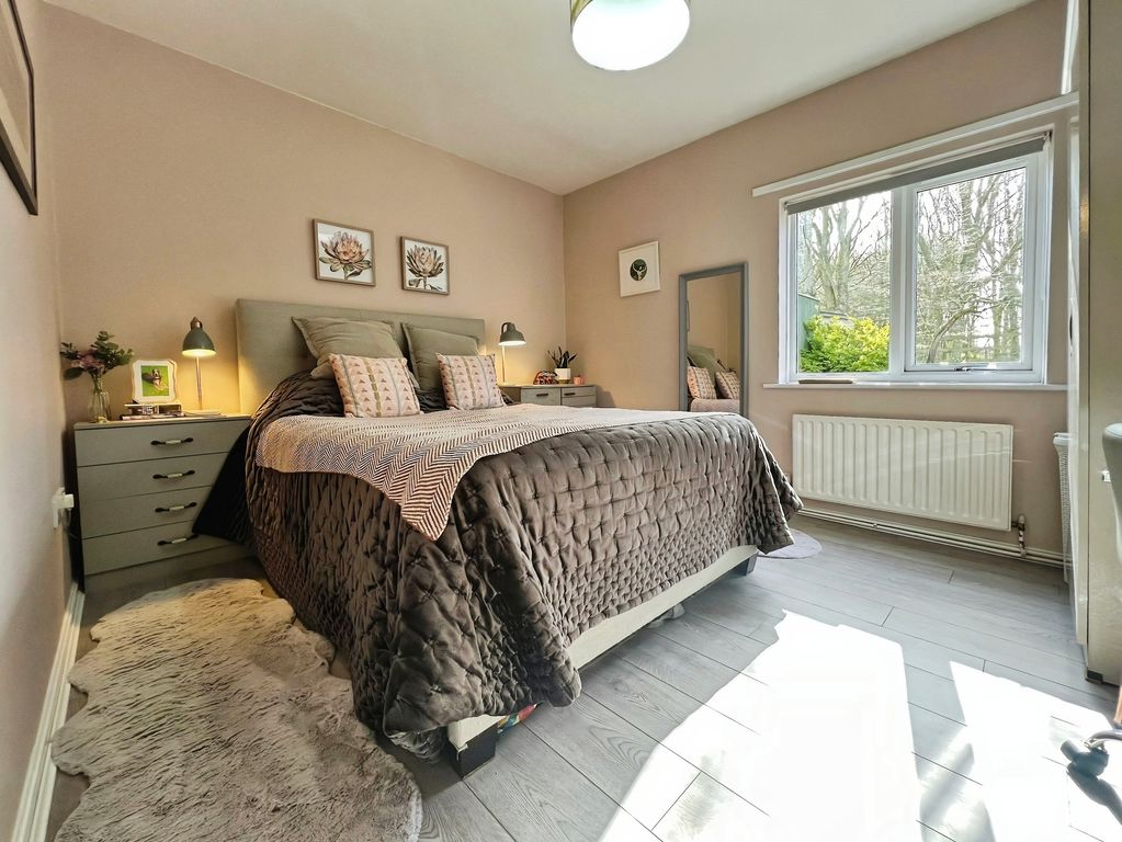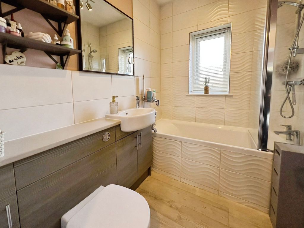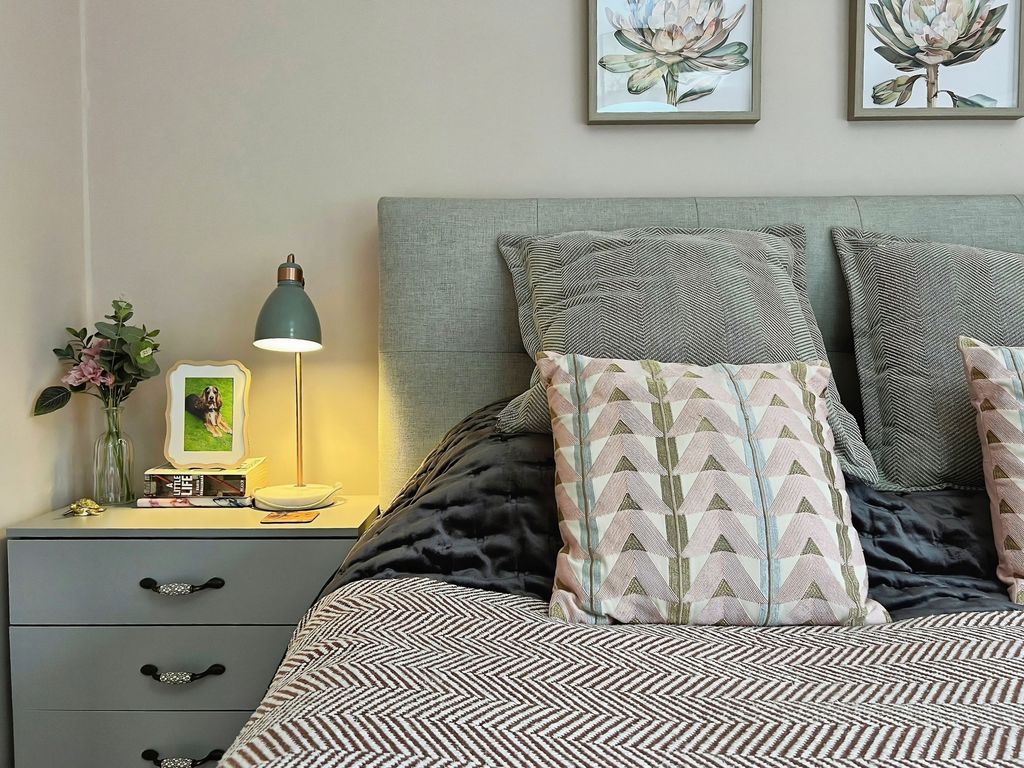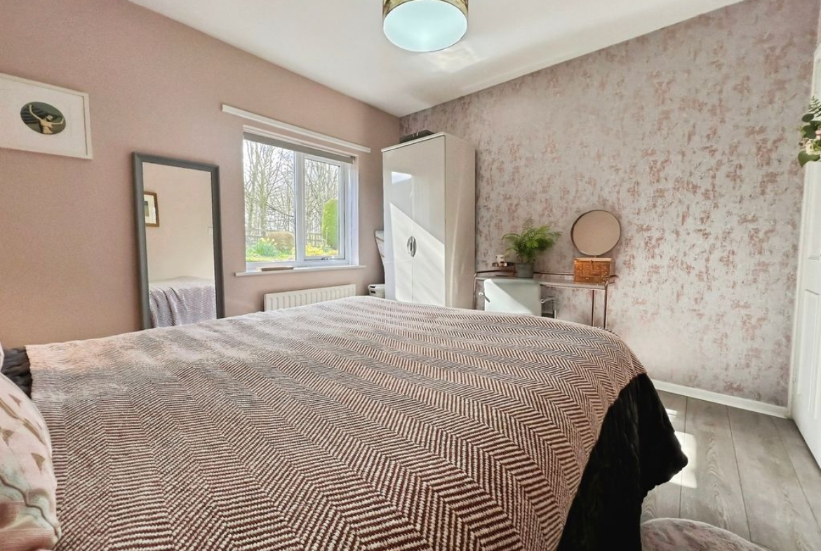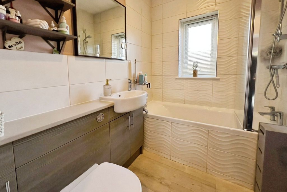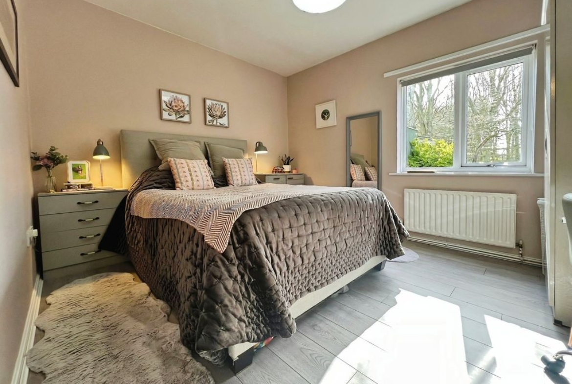 There are two double bedrooms. The master bedroom overlooks the garden, while the second double bedroom includes built-in wardrobes. The bathroom offers a shower over the bath and a heated towel rail.