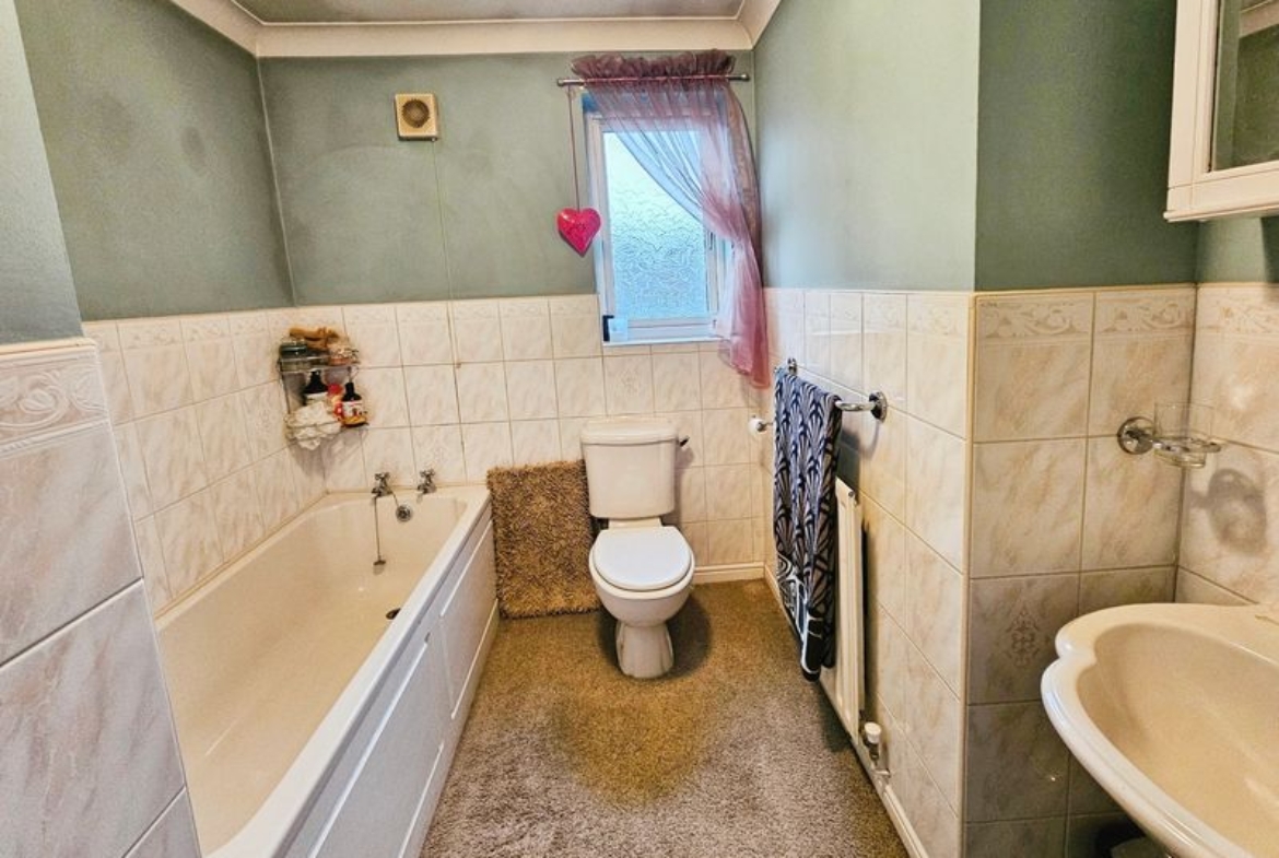 Double glazed window, panelled bath, low level wc, single radiator, part tiling to walls, storage cupboard.