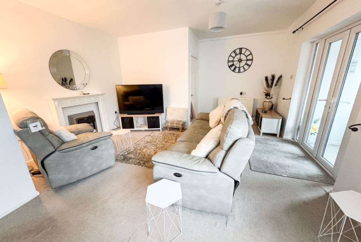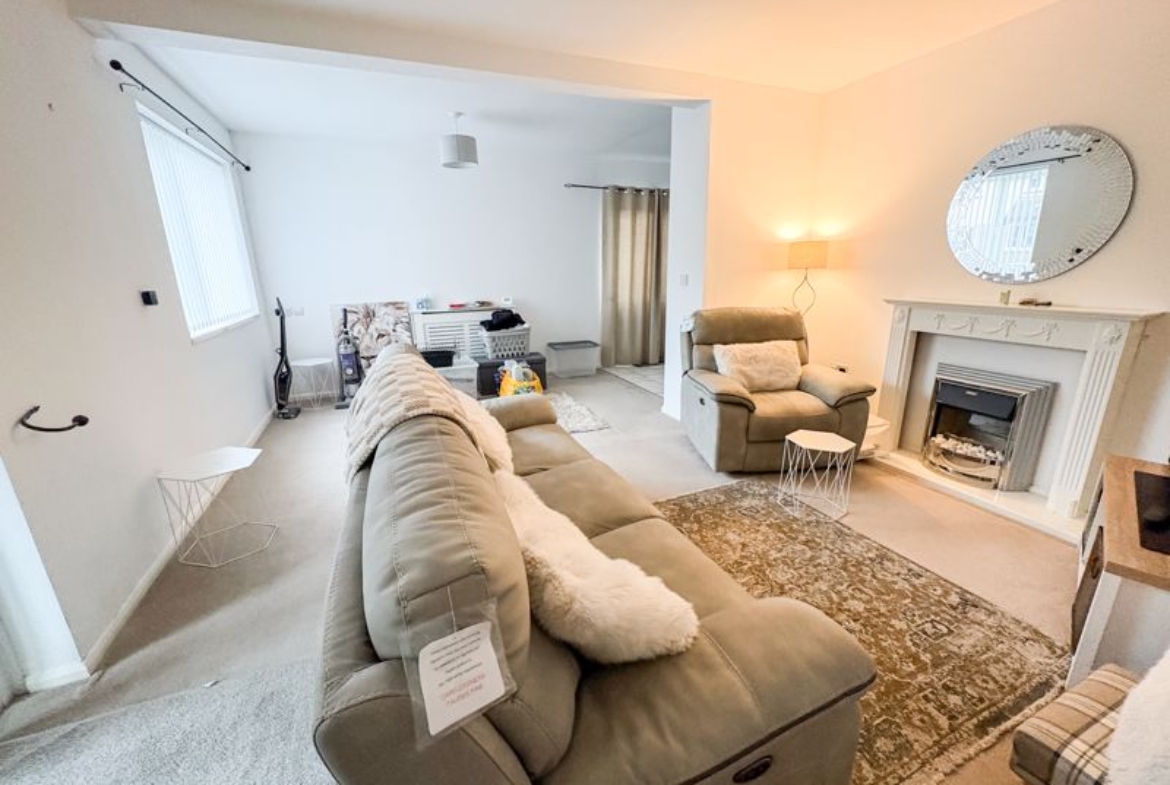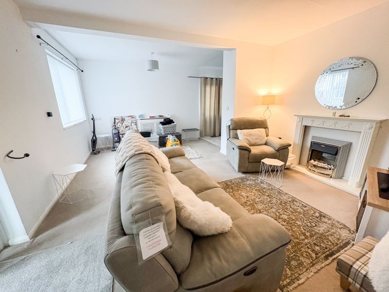Upon entering, you are welcomed by a useful entrance porch, perfect for coats and shoes before stepping into the heart of the home. The impressive open-plan lounge and dining area provides a warm and versatile space, filled with natural light and offering ample room for both relaxation and entertaining. This flows seamlessly into the modern fitted kitchen, complete with a range of units and work surfaces, making it a practical and inviting place to cook and prepare meals.